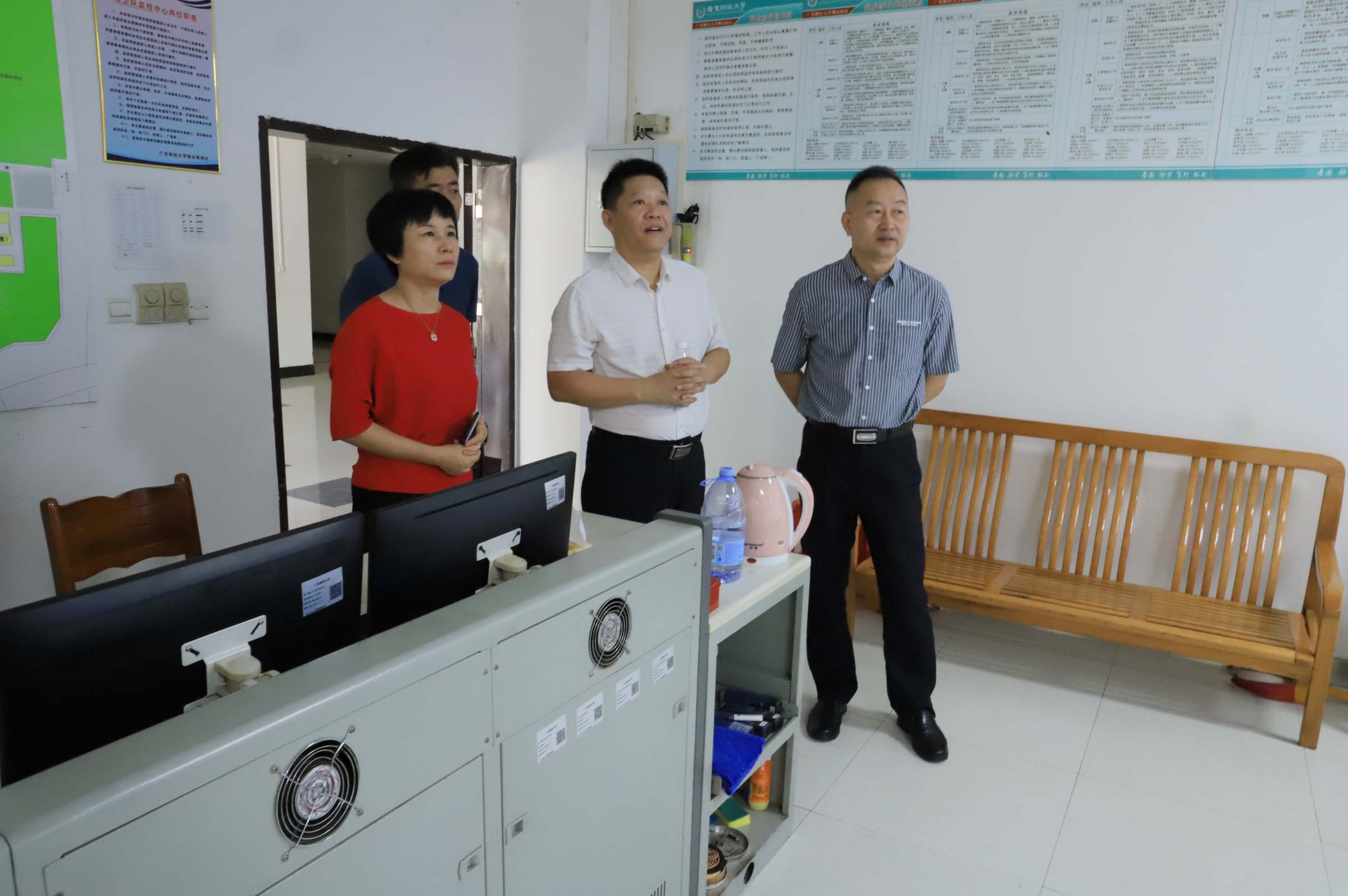 会后,刘祖华带队进行校园安全大检查。佛山校区管委会班子、门诊部及新东升物业公司工作人员参加。检查组先后检查了监控室工作运行情况、消防控制室报警处理机制、校区东西门岗疫情防控管理、拓新楼实验安全管理、图书馆钢架修缮完成情况、电信大楼消防安全、校区饭堂的用气用电安全和食品安全管理、学生宿舍安全管理等,针对检查中发现的安全隐患,要求相关部门现场做好整改工作,明确责任人,及早落实到位。