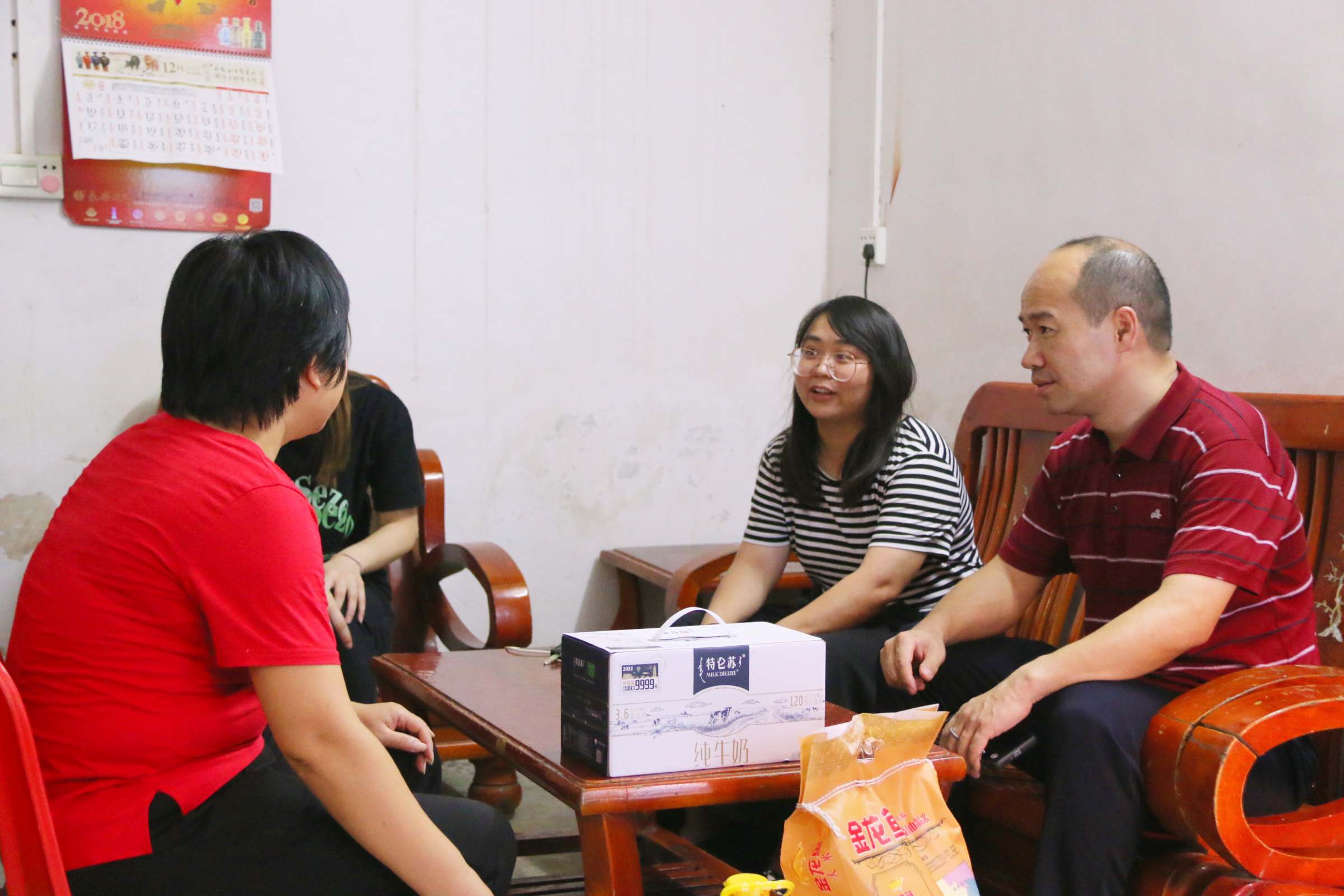 在对在校生的家访中,服务队询问了学生在校表现和学习生活情况,深入了解三位学生的家庭状况和实际困难,送上了油、米、牛奶等慰问品,同时讲解了国家和学校的资助政策,勉励学生胸怀梦想、不畏困苦,努力学好专业知识,以实际行动感恩家庭、回馈社会。