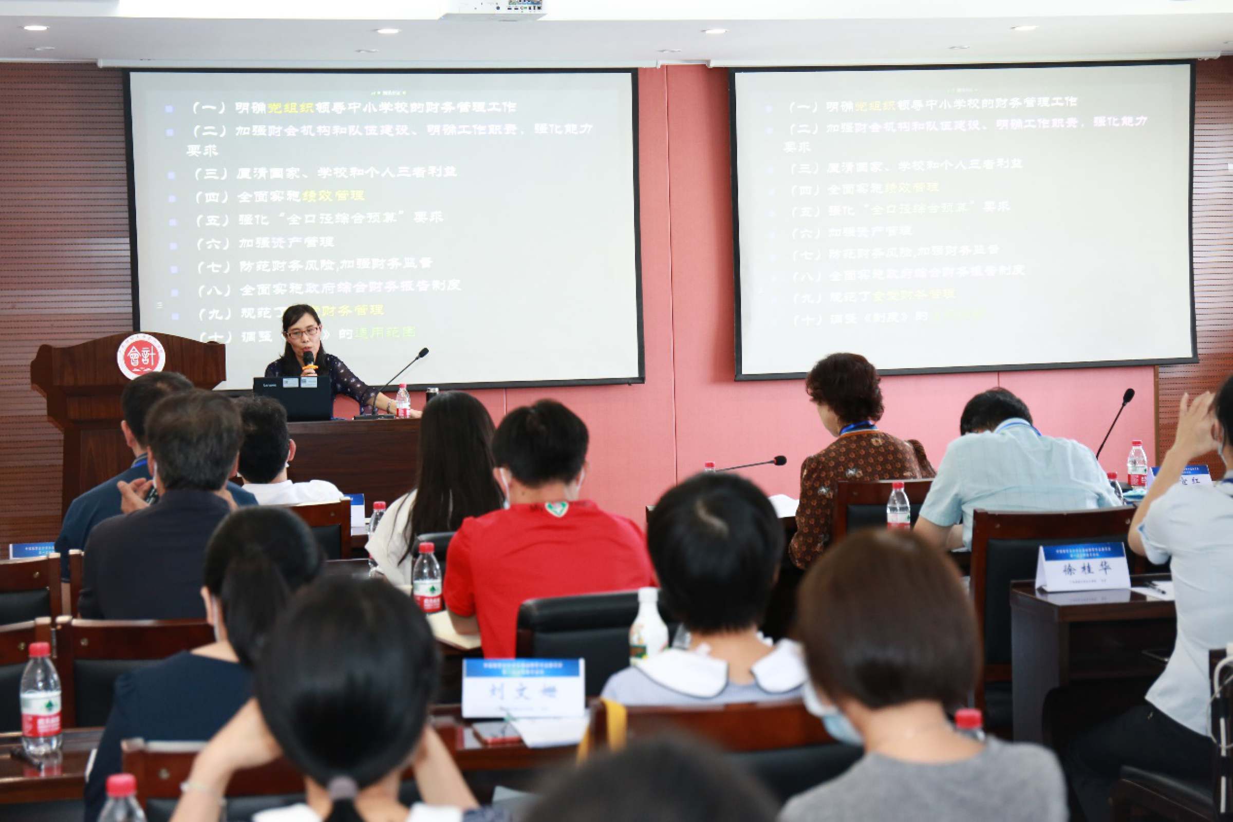 会上,山东财经大学初宜红教授以“《中小学校财务制度》修订解读”为题、蔡文雅以“学深悟透落实制度 筹好用好管好教育经费”为题分别进行了制度宣讲;专委会副秘书长、江苏省扬州市教育局财务处处长赵春喜分享了中小学财务制度规范的经验;北京师范大学财务处处长易慧霞介绍了中小学校财务指南编写情况。