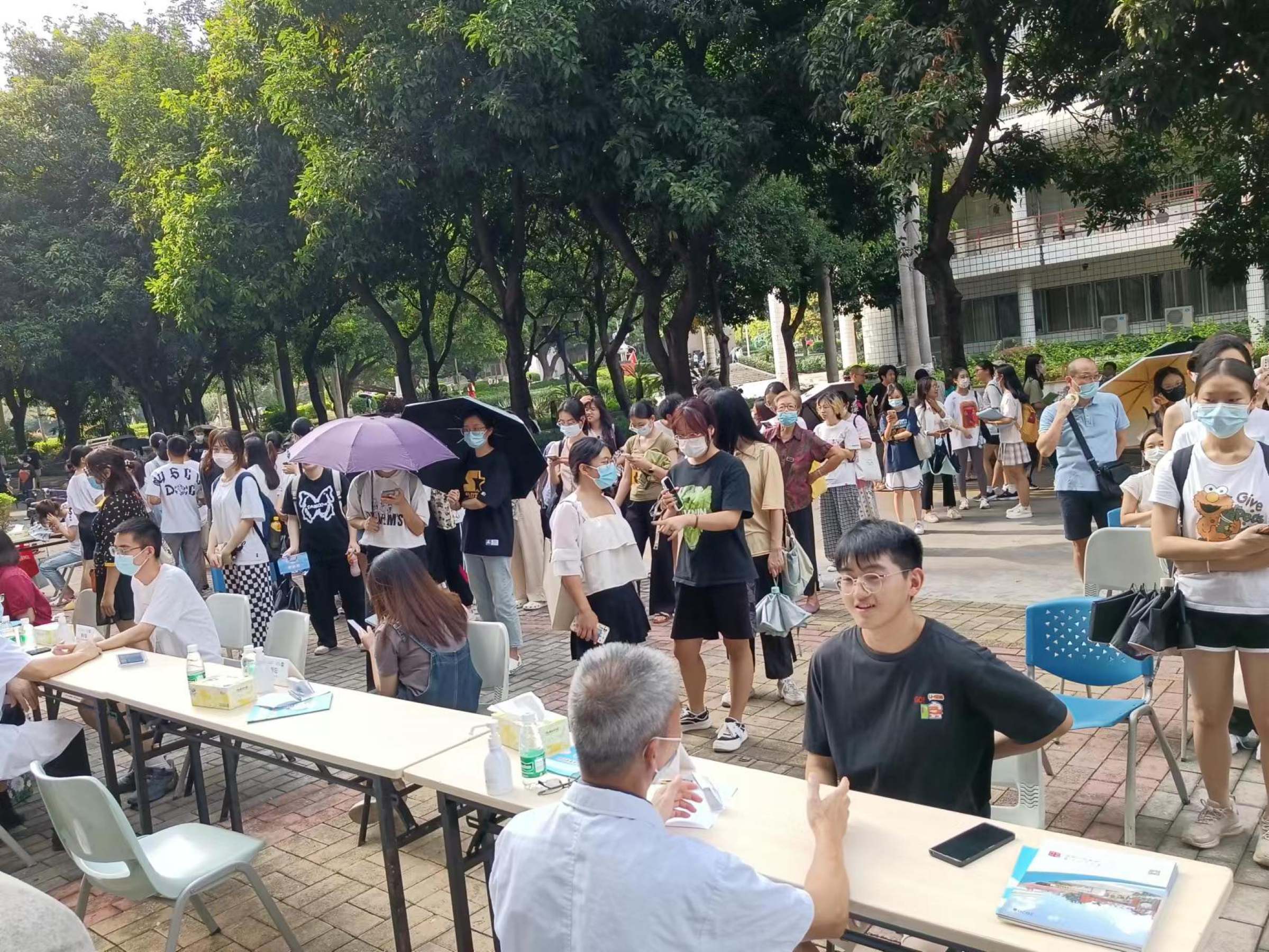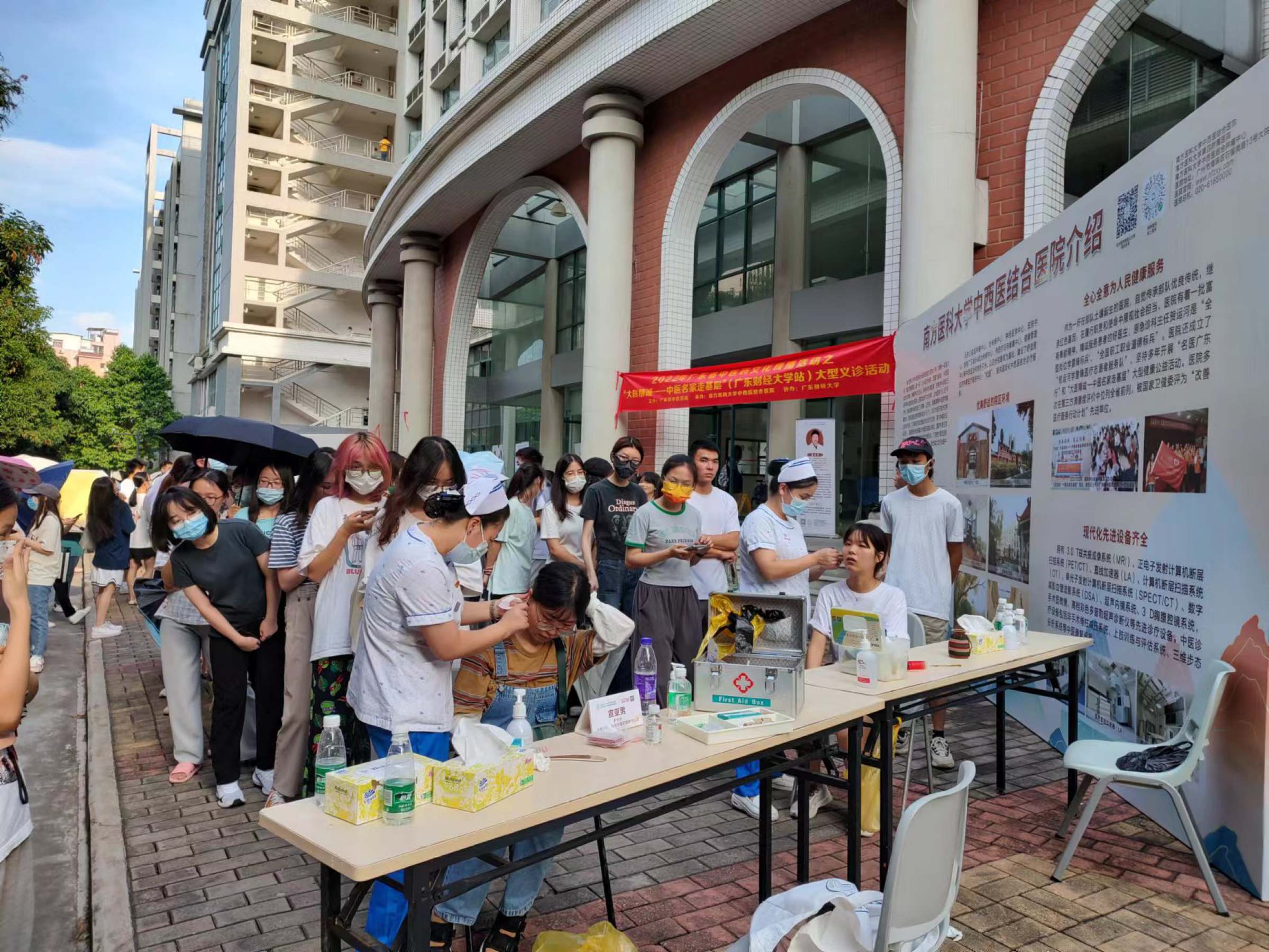 当天下午,南方医科大学中西医结合医院针推康复科、肾病科、脾胃病科、治未病中心、骨伤科、心血管科、肿瘤科、妇科、特需医疗服务中心、风湿病科等科室14名名医专家在综合楼广场前为我校广大师生开展义诊服务,师生响应热烈,每一位名义专家前面都整齐的排起了长队,义诊咨询场面火热。