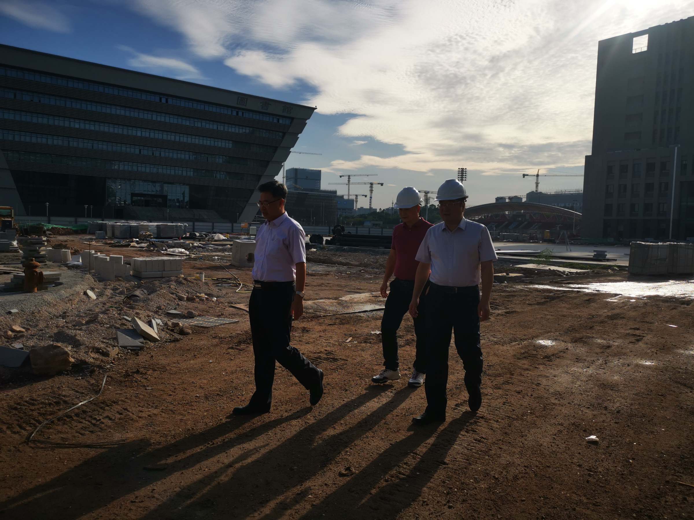 10月20日下午,副校长陈国栋、丁友刚深入“产教融合”项目工地,检查工程质量、施工安全、建设进度等情况,指导项目周边配套设施建设方案。基建处副处长方彤彤等相关人员陪同检查。