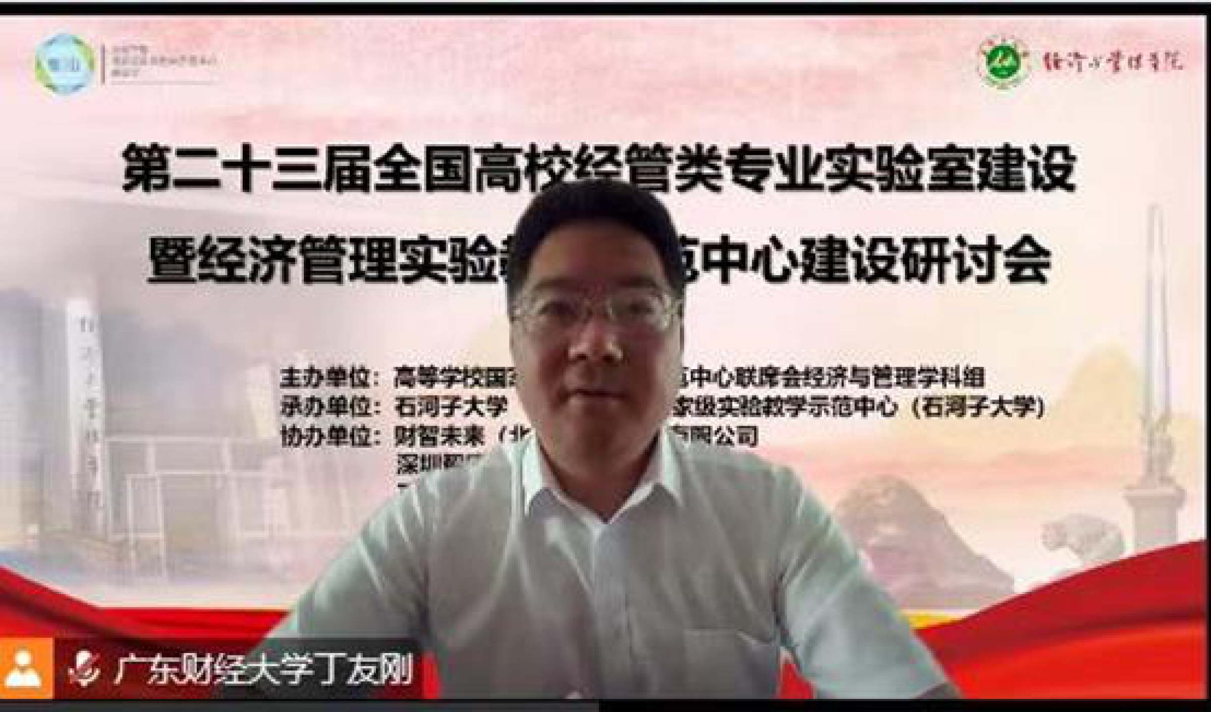 10 月 29日,由高等学校国家级实验教学示范中心联席会经管学科组主办,石河子大学承办的第二十三届全国高校经管类专业实验室建设暨经济管理实验教学示范中心建设研讨会在线上举行,教育部高教司、新疆生产建设兵团教育局、高等学校国家级实验教学示范中心联席会以及来自国内高校主管经管实验教学的校领导、经管中心负责人共280余人参会。我校副校长丁友刚,经管中心主任姚维保、副主任李立君应邀参会。