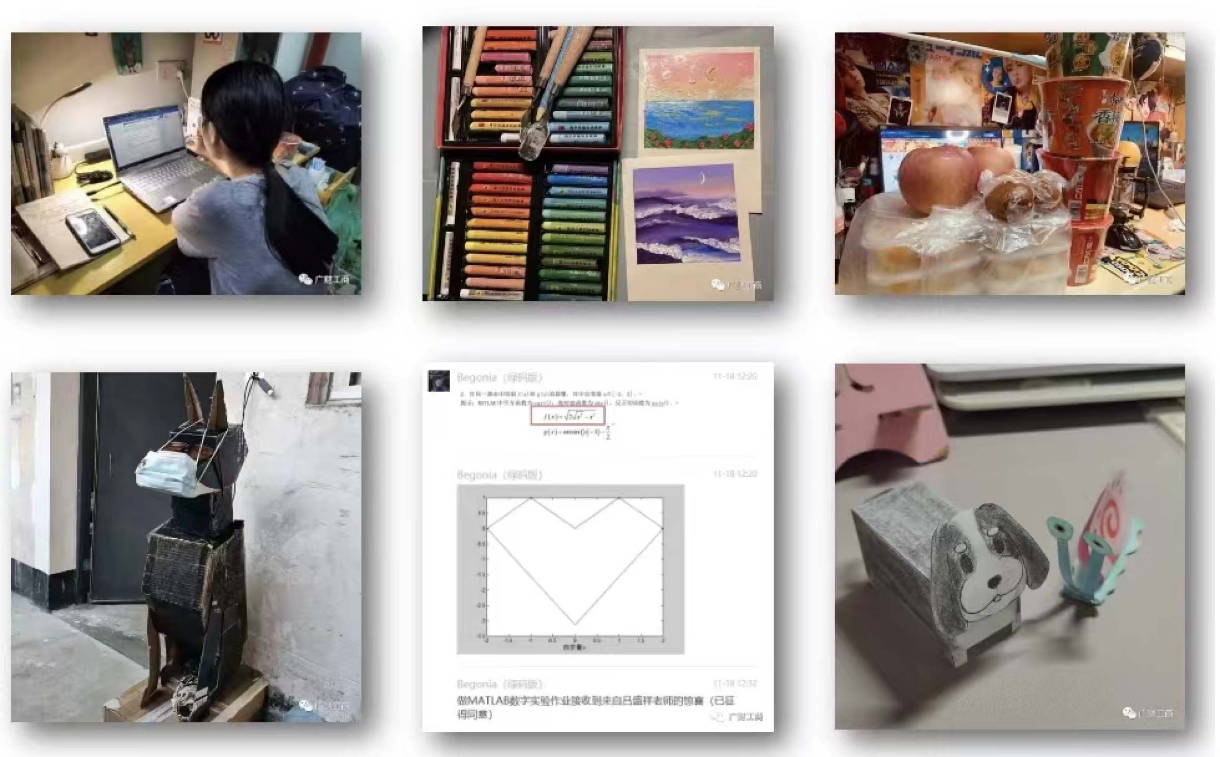 隔离病毒,不隔离爱。同学们热爱学习,奋进自律,与老师相聚“云端”,求知的热情和思想的光芒穿透屏幕的阻隔,在师生间交流互动;同学们对生活保持热爱,小小的宿舍,隔离不了对美食的期待、对健康的追求、对艺术的感知、对一切美好事物的向往;感恩每一个奋战在疫情一线的“大白”和“红马甲”们,通过简单的文字、可爱的涂鸦,向守护他们表达满满的谢意和深深的敬意!