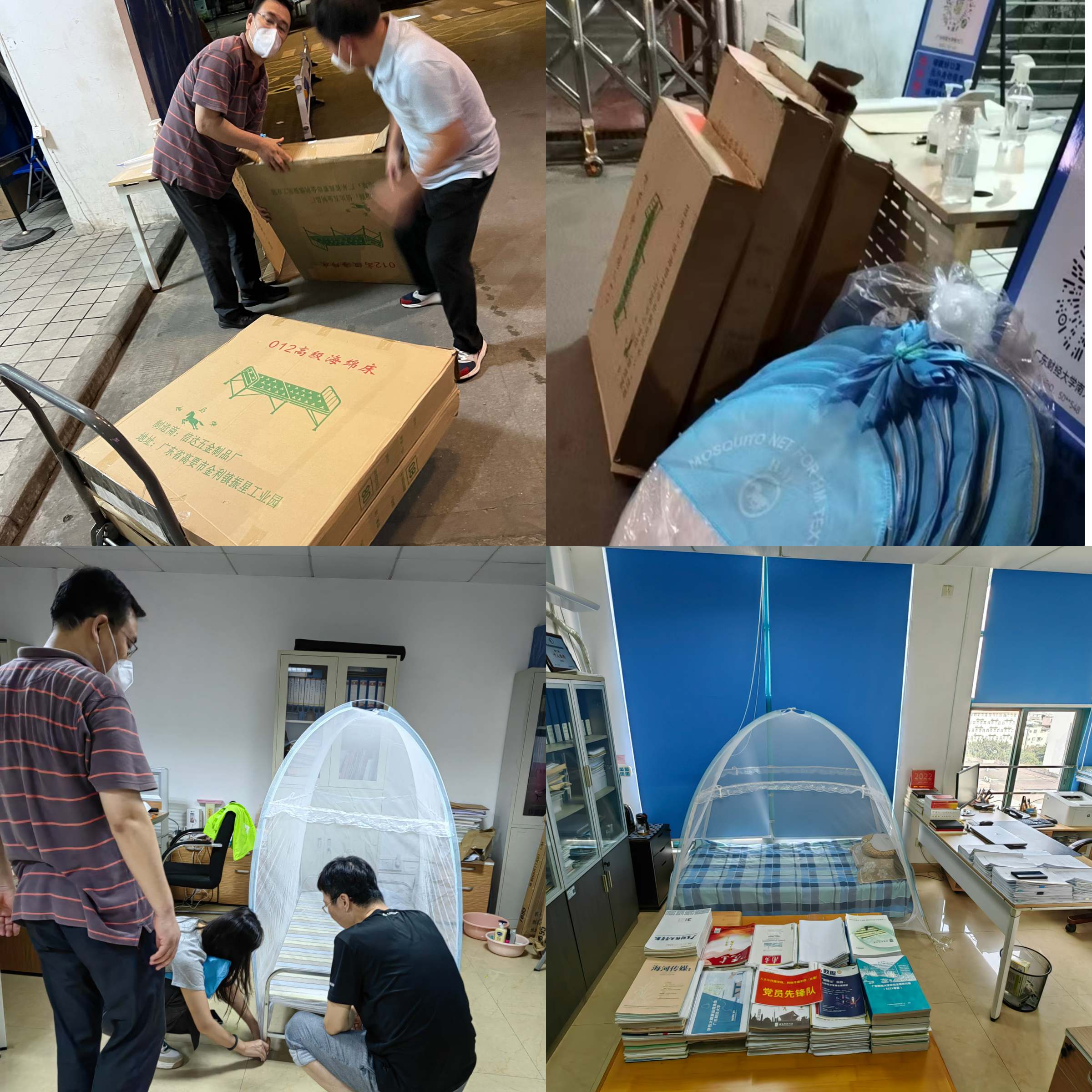 学院注重对疫情防控一线人员的关心关爱,连夜为返校的教工解决床、蚊帐等生活必需品,为一线人员解决好后顾之忧。各系老师积极联系社会力量,寻求支持。学院郑臣喜老师联系《乐在厨中》烹饪研学中心捐助人民币3000元,用于购置酒精喷雾、口罩等防疫物资以及方便面、纸巾、牛奶、饼干等日常生活用品。医药企业“至诚金方”中医馆捐助金方清袋泡凉茶120盒,N95口罩300个,医用防护面罩50个,酒精一批。)此外,各系老师们多方协调,第一时间筹措了的500个N95口罩、一批酒精、消毒用品及应急食品等送往学校。