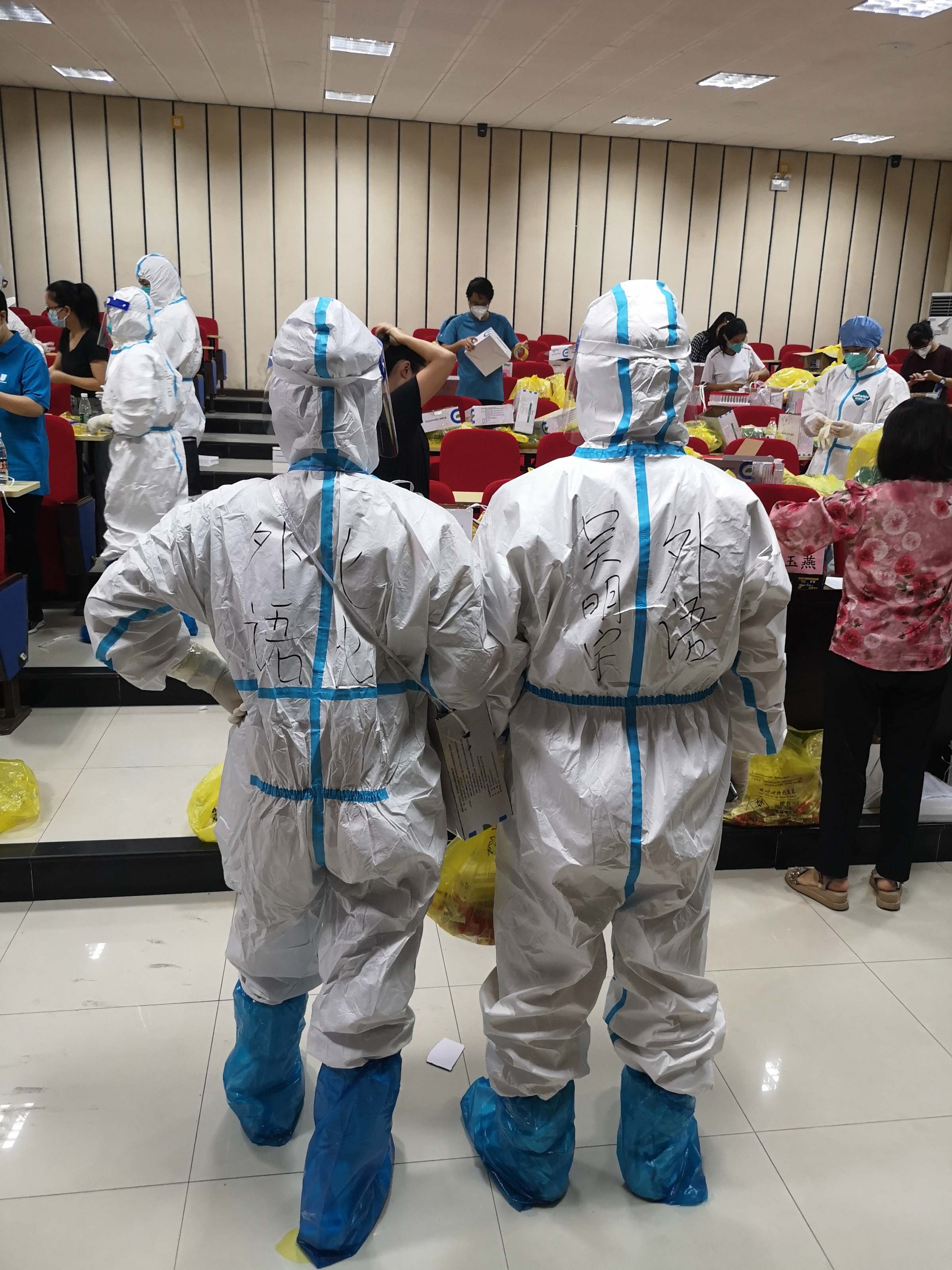 外国语学院日语系专业老师吴明宇、周媛,当校园疫情疫情发生之际,家住学校的夫妻二人,没有丝毫犹豫,第一时间双双报名参加志愿者,他们舍小家为大家,坚守在抗疫一线。问及当时加入志愿者的初衷,吴老师说:“我们是广财的老师,作为学校的的一份子,肯定要为学校防疫工作贡献自己的一份绵薄之力。”配合开展核酸筛查、秩序维护、协助配送物资、饭堂志愿者……每个岗位都有他们奋斗的身影。两位老师既要完成线上授课任务,还要担任志愿者,一天的时间排得满满的。经常是上午上完课,下午就赶赴担任志愿者,连稍微休息的时间都没有。夫妇俩如同发条一样,时刻出现在需要他们的岗位上:饭堂、实验楼、封控宿舍区、学院都能看到他们的身影。谈起这些工作时,周媛老师却表示:“我们是做了一些事情,但也只是一小部分。”