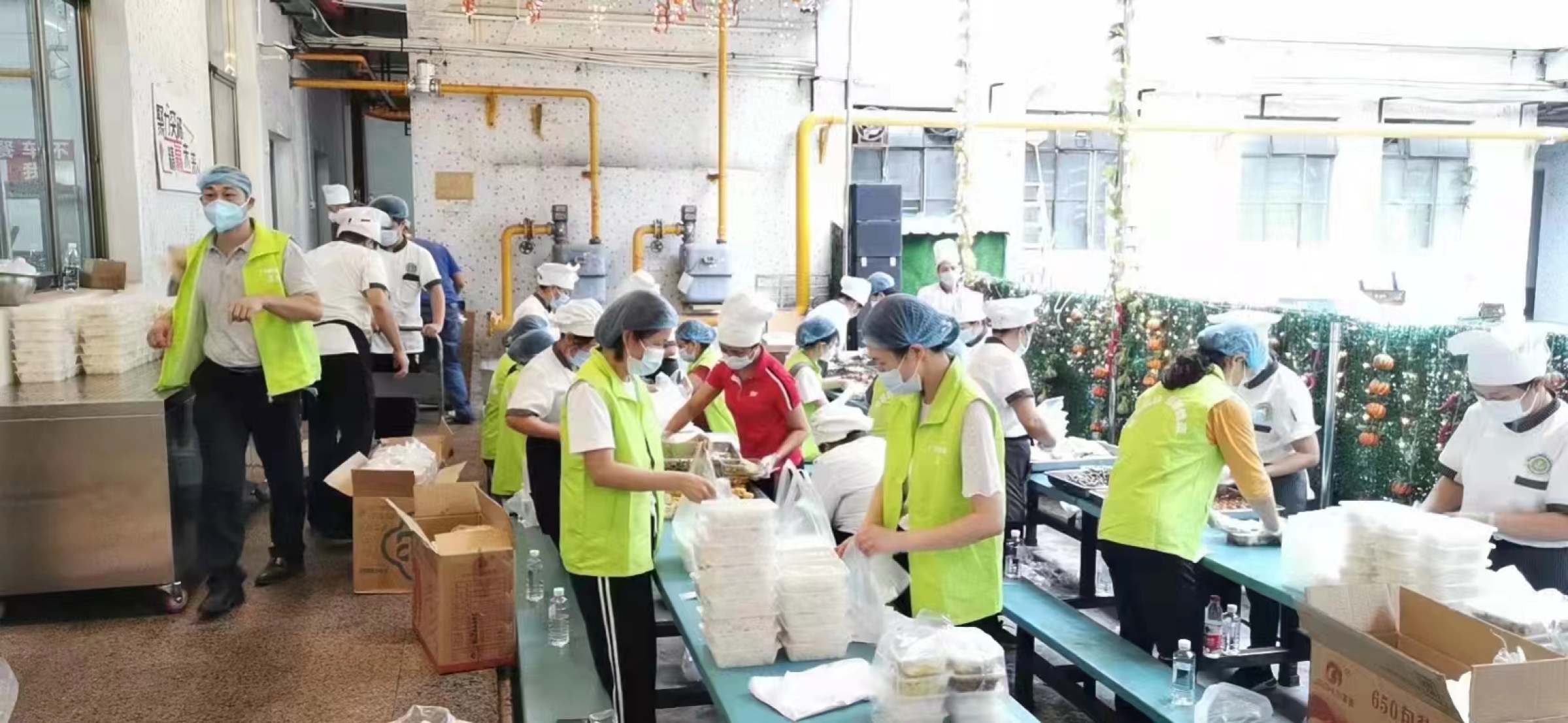 教职工的“娘家人”——校工会第一时间组建“教师志愿服务队”协助分餐、运餐,老师们主动将自己的私家车作为搬运车,通力合作、分工有序,三尺讲台上的专家、教授变成了卸货员、搬运工、物资分拣员、校园骑手……同学们的一日三餐都是由这些“娘家人”协助餐饮服务人员打包、装箱,搬运到车上运往各宿舍楼栋。每餐运送13000多份饭菜,每餐每辆车要跑大概10-15个来回30多公里,完成配餐58万余盒饭菜,不遗余力为同学们的每一餐保驾护航,极大程度缓解了学校的送餐压力。