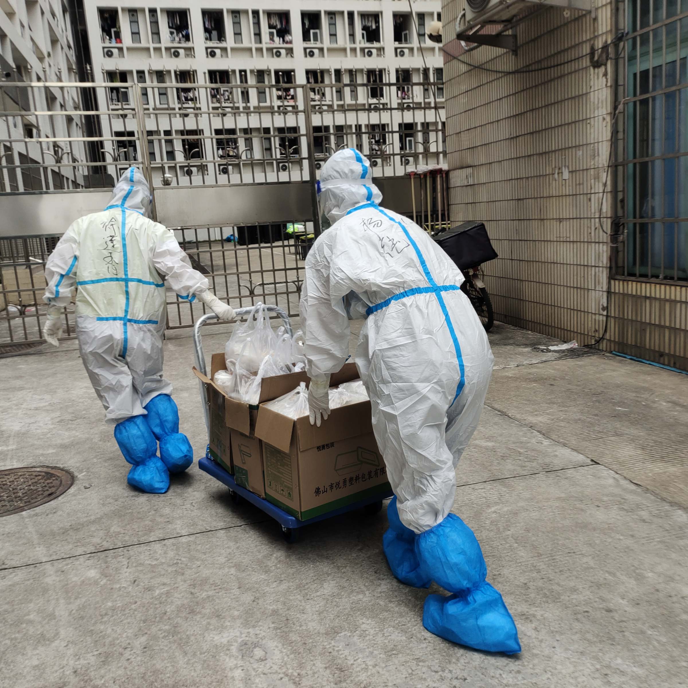 32栋学生人数最多、宿舍布局最复杂、学生特殊需求也最多,为了满足同学们吃到不同的口味,三个食堂轮换供餐,而每个食堂的配送方式又不同,为了提高送餐速度,外围志愿者每餐都是提前1个多小时做准备,不断总结经验,按楼层、宿舍、人数精准分好餐食,为的是“大白”们能够快速、精准地送餐,看着排排整齐的送餐拖车,有人戏称“可以开送餐公司”了。机关青年党员闻令而动,哪栋学生宿舍列为高风险,那里就有青年党员的身影,他们不畏艰难,科学做好防护,积极主动参与高风险宿舍楼的送餐工作,践行着使命与担当,是不负时代的青年党员。基建处党员志愿者担当作为,承包最辛苦的“差事”——为没有电梯的第27栋、第21栋高风险封控学生宿舍楼送餐,已连续20天包揽了从核酸采样、送餐到清运生活垃圾“一条龙”的抗疫任务。18栋、20栋、21栋、28栋、29栋、30栋、32栋、化1化2学生宿舍楼等封控楼宇,在各队志愿者的坚守拼搏中顺利解封。
