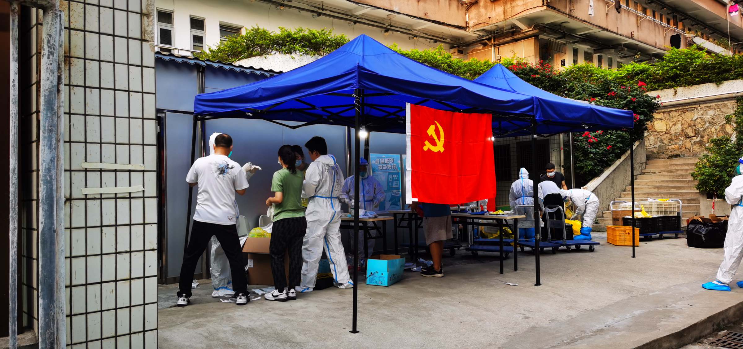 病毒无情,师生有情。11月初,海珠区新一轮新冠肺炎疫情打乱了广州校区校园原本的宁静,机关党员干部第一时间挺身而出、冲锋在前,在学校党委的坚强领导下,党委组织部充分发挥职能作用,会同纪检监察室、机关党委、校工会,各二级党组织广泛动员,迅速组建党员抗疫先锋队、教师志愿服务队投入到校园疫情防控各项工作中,核酸采样、封控学生宿舍送餐、返乡服务、分餐运餐、物资分发……一个个义无反顾的身影,一次次心手相连的接力,从黑夜到黎明,他们吃睡在办公室,以校为家、守护校园,用每一份担当、奉献和坚守凝聚了校园最温暖、最感人的力量,以实际行动贯彻落实党的二十大精神。