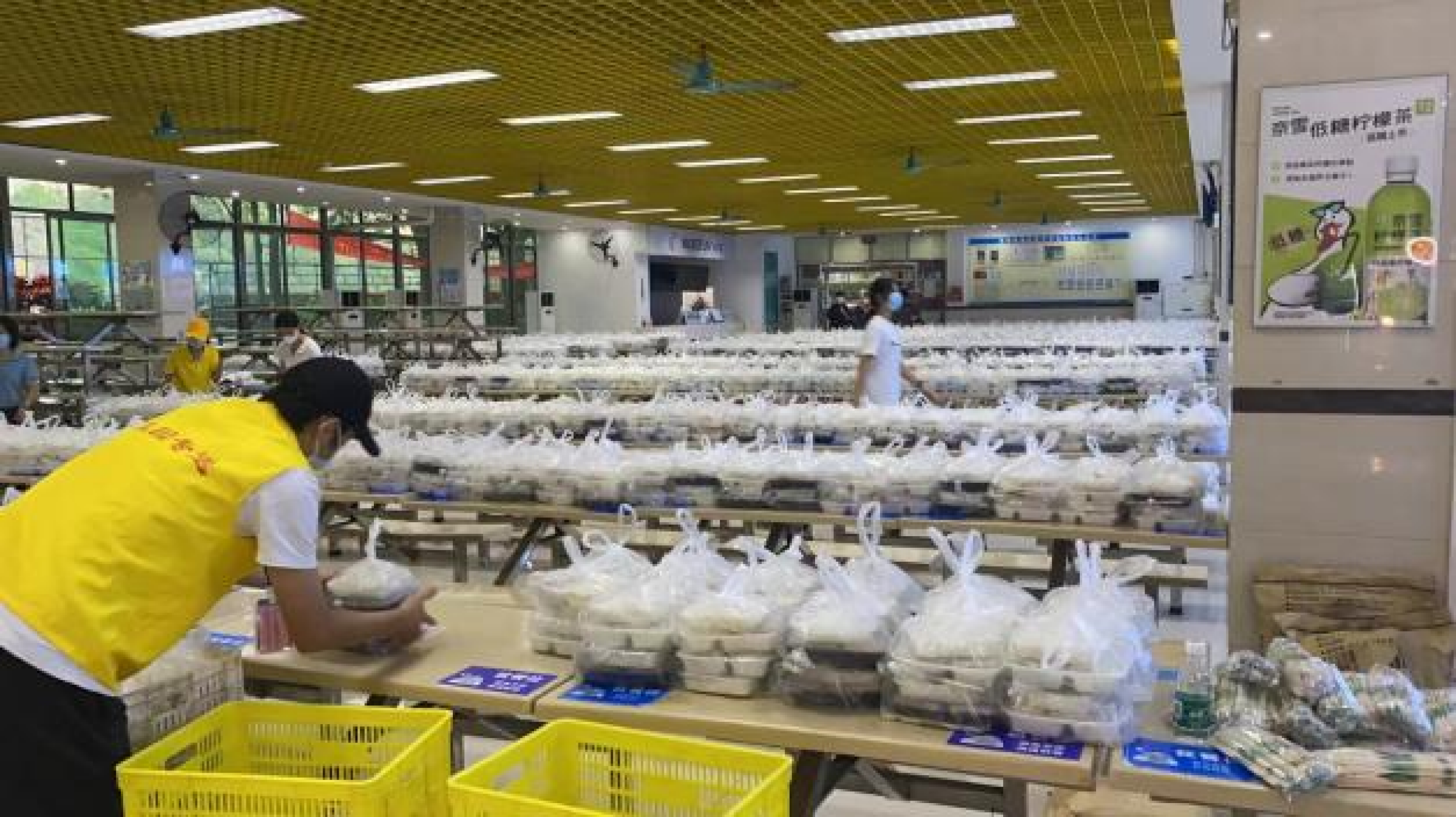 在人力方面,公司携手笑容公司联合作战;笑容公司暂停校园外卖配送服务项目,抽调项目9名专业配送人员,自带配送车辆,全力配合后勤保障组开展学生供餐分装和运送工作;11月11和12日转运午餐、晚餐数量均近3000盒。为增加单次盒饭运输数量、让学生尽快吃上热饭热菜,公司还借用三轮车,进一步提高运餐效率,极大缓解了学生供餐运力不足的问题。此外,从11月11日封控第一天开始,笑容公司全体人员一直和学校全体志愿者一起奋战在抗疫一线,协助后勤保障组和农特店开展食堂分餐、运餐、多类物搬运、卸货、分装等多项工作;随叫随到、任劳任怨。