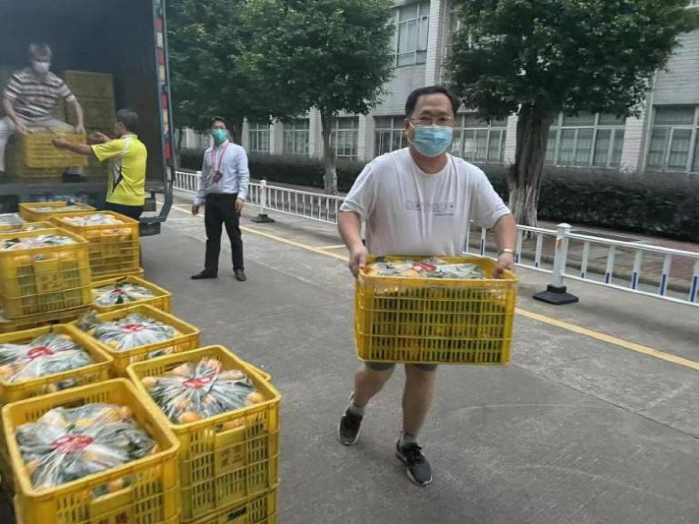 11月12-17日,他被分配在公司承担物资搬运和领餐工作。当时人手不足,随叫随到。那一次,将一筐筐重约50、60斤的赣南脐橙卸下车。那一晚,随车到天河区卸装100箱皇帝柑,回到学校再搬下车,他已是满身大汗,洗完澡后已是夜深人静。他还为公司的志愿者和第三方人员共17人领一日三餐。亲自把三餐送到因封控不能出门的蜂创公司员工居住的房门口;每餐必通知外卖配送员工来取餐;他把财务人的细致、热心带到抗疫工作中。