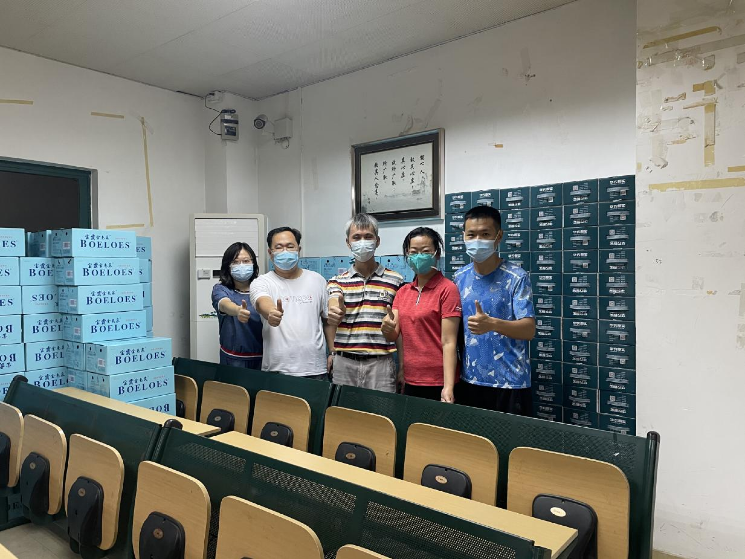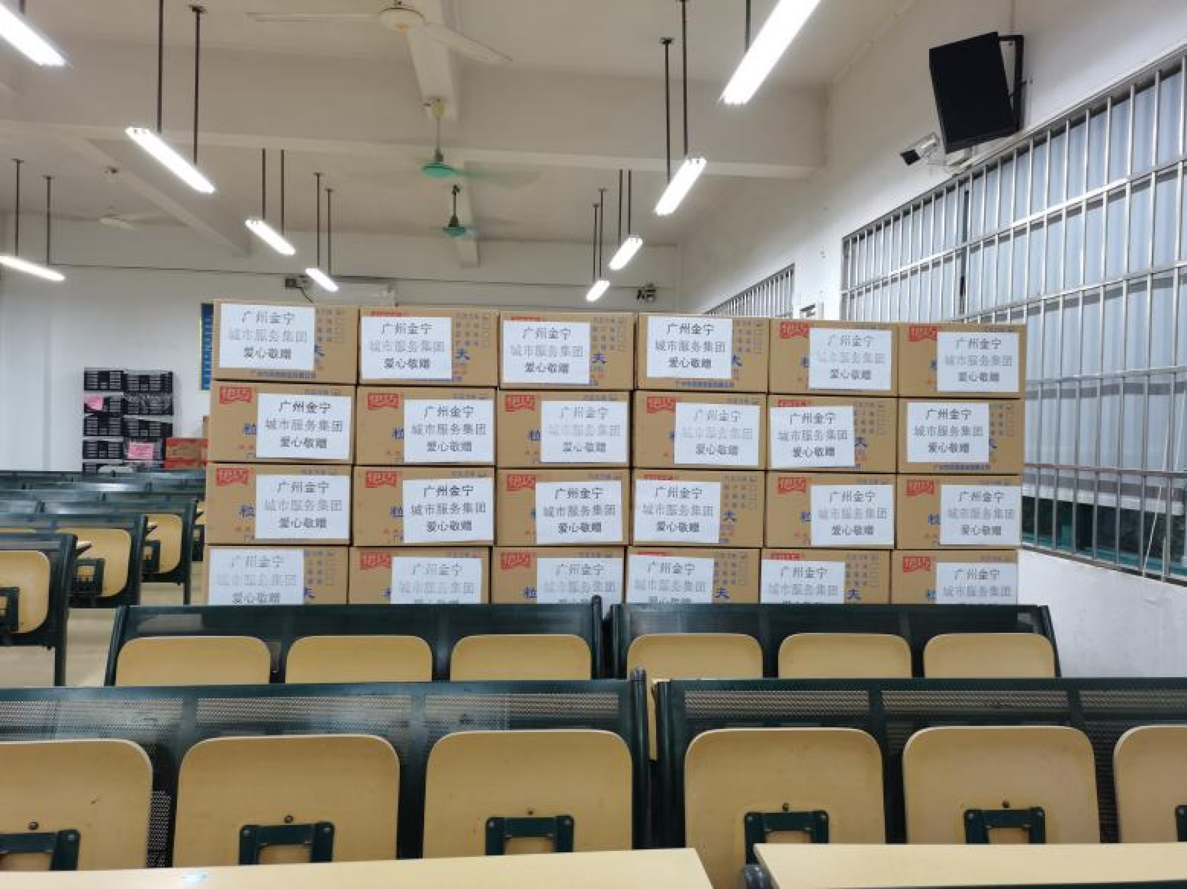 此外,公司多位同事还积极联系其它多家社会爱心企业对学校进行捐赠,包括:11月18日西亚兴安商业有限公司捐赠的5000份达利园面包和风行牛奶;11月19日广州金宁城市服务集团捐赠的伊巧粒粒华夫饼干1200包;11月24日仁馨生物科技有限公司捐赠的50000个医用外科口罩;11月25日同程网络科技股份有限公司捐赠的4000个N95口罩。
