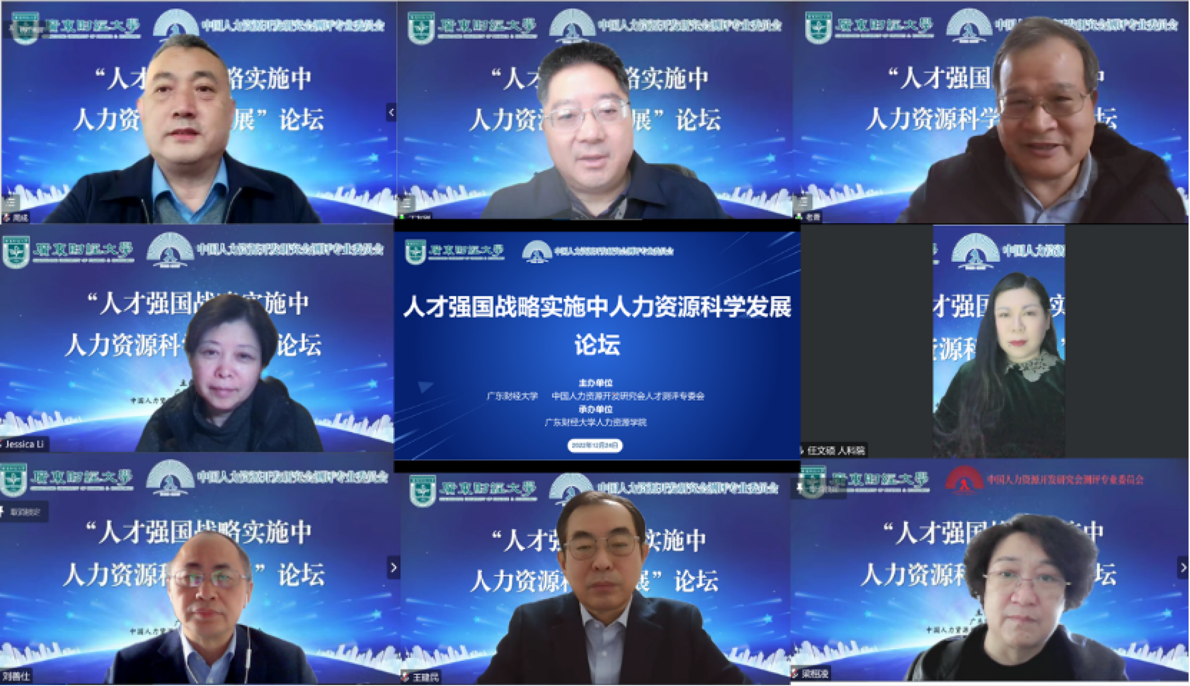 12月24日,由广东财经大学和中国人力资源开发研究会测评专业委员会联合主办,我校人力资源学院承办的“人才强国战略实施中人力资源科学发展论坛”以线上线下相结合的方式顺利举办。本次论坛旨在将人才强国战略实施工作与人力资源科学发展实践有机结合,对接大湾区人力资源创新发展的重大需求,加强产学研相互交流,提供高水平学术平台,构建可持续发展学术共同体,共500余名师生在线参会。