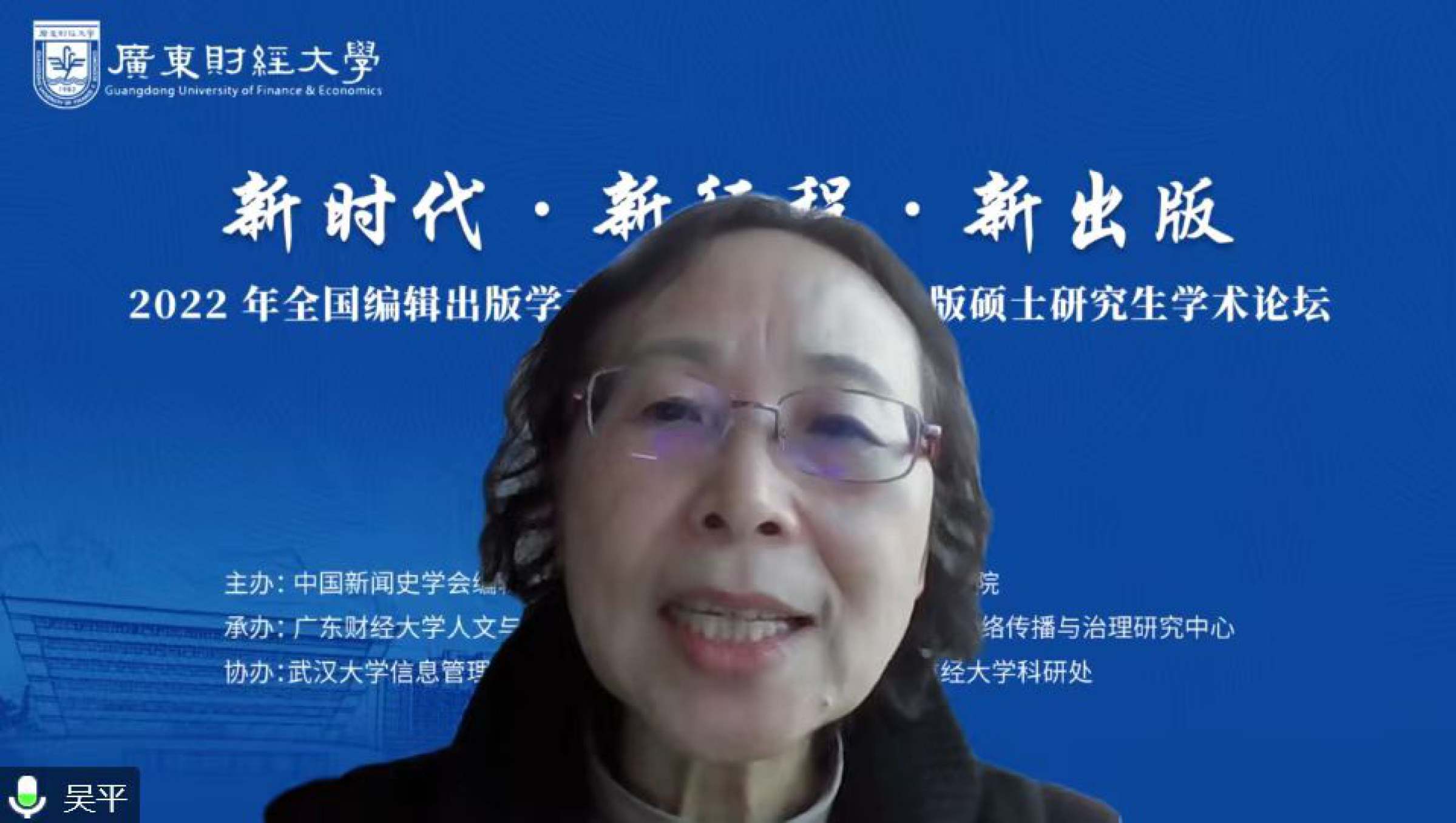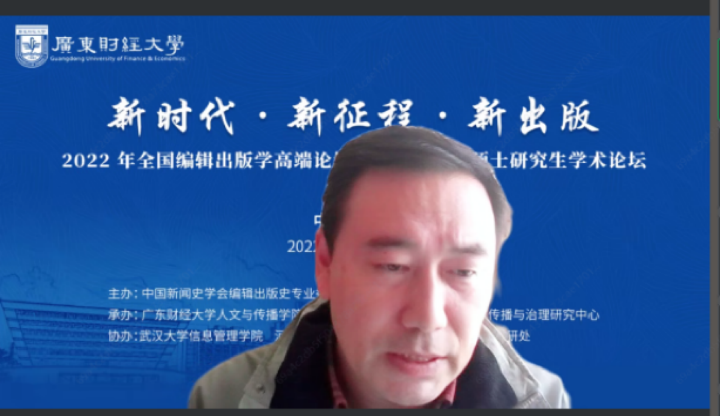 12月24日至25日,主题为“新时代·新征程·新出版”的全国编辑出版学高端论坛暨广东省出版硕士研究生学术论坛在线上顺利召开。来自全国编辑出版学界和业界的知名专家学者齐聚云端,在党的二十大精神指引下,共同感悟新时代新征程赋予新出版的光荣使命和艰巨任务,共商编辑出版学科高质量发展大计,充分彰显了新时代新征程上出版人的使命担当。本次论坛由中国新闻史学会编辑出版史专业委员会、广东财经大学研究生院主办,广东财经大学人文与传播学院、网络传播学院(合署)、广东财经大学网络传播与治理研究中心承办,武汉大学信息管理学院、河南大学新闻与传播学院、广东财经大学科研处协办。