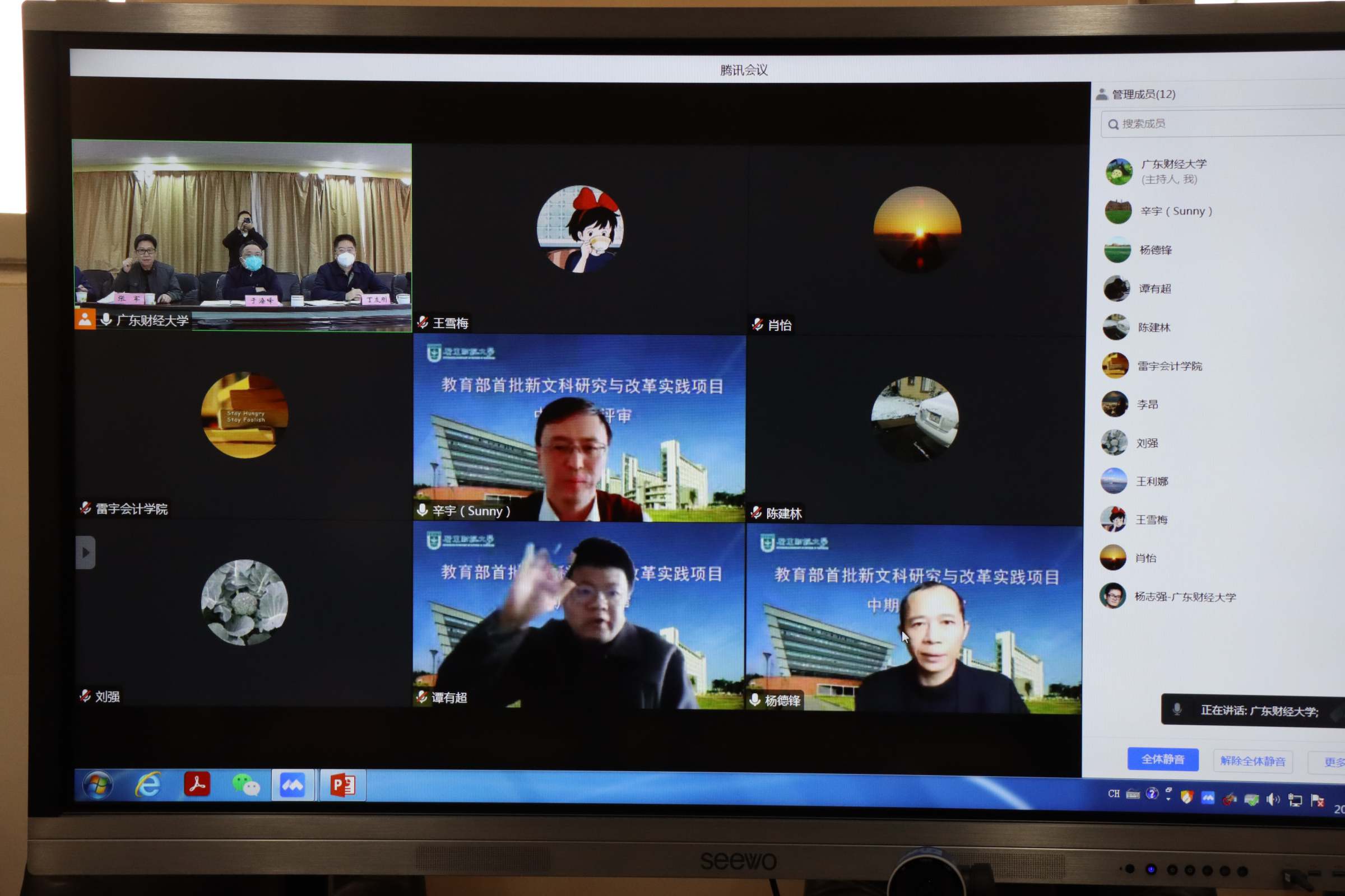 本次评审分为材料审阅、线上论证、集中评议三个阶段。线上论证环节由各项目汇报人对项目作10分钟的PPT汇报,专家组听取汇报后,对项目的推进情况进行点评,对我校的3项新文科项目给予了高度评价,并从智能化师资队伍、跨学科融合、政产学研协同育人平台等方面给出指导意见,同时强调教改项目要以学生发展为中心,要突出学生从教改项目中的获得的提升和收获。线上论证后专家组对3个项目进行了集中评议,一致同意3个项目通过中期检查,建议推荐为优秀项目。