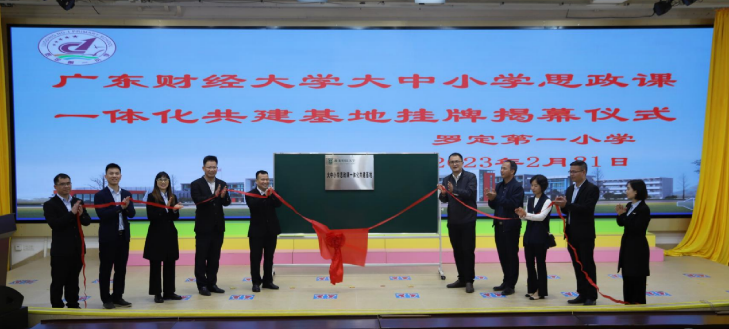 会后,分别在罗定中学、泷州中学、敏博实验学校、罗定第一小学举行了“广东财经大学大中小思政课一体化共建基地”挂牌揭幕仪式,这标志着我校与云浮市在区域内共建大中小学思政课一体化进入了一个崭新的阶段。