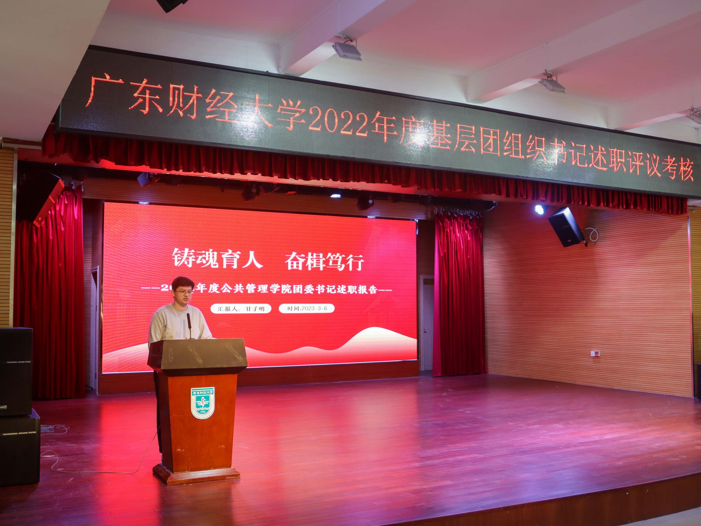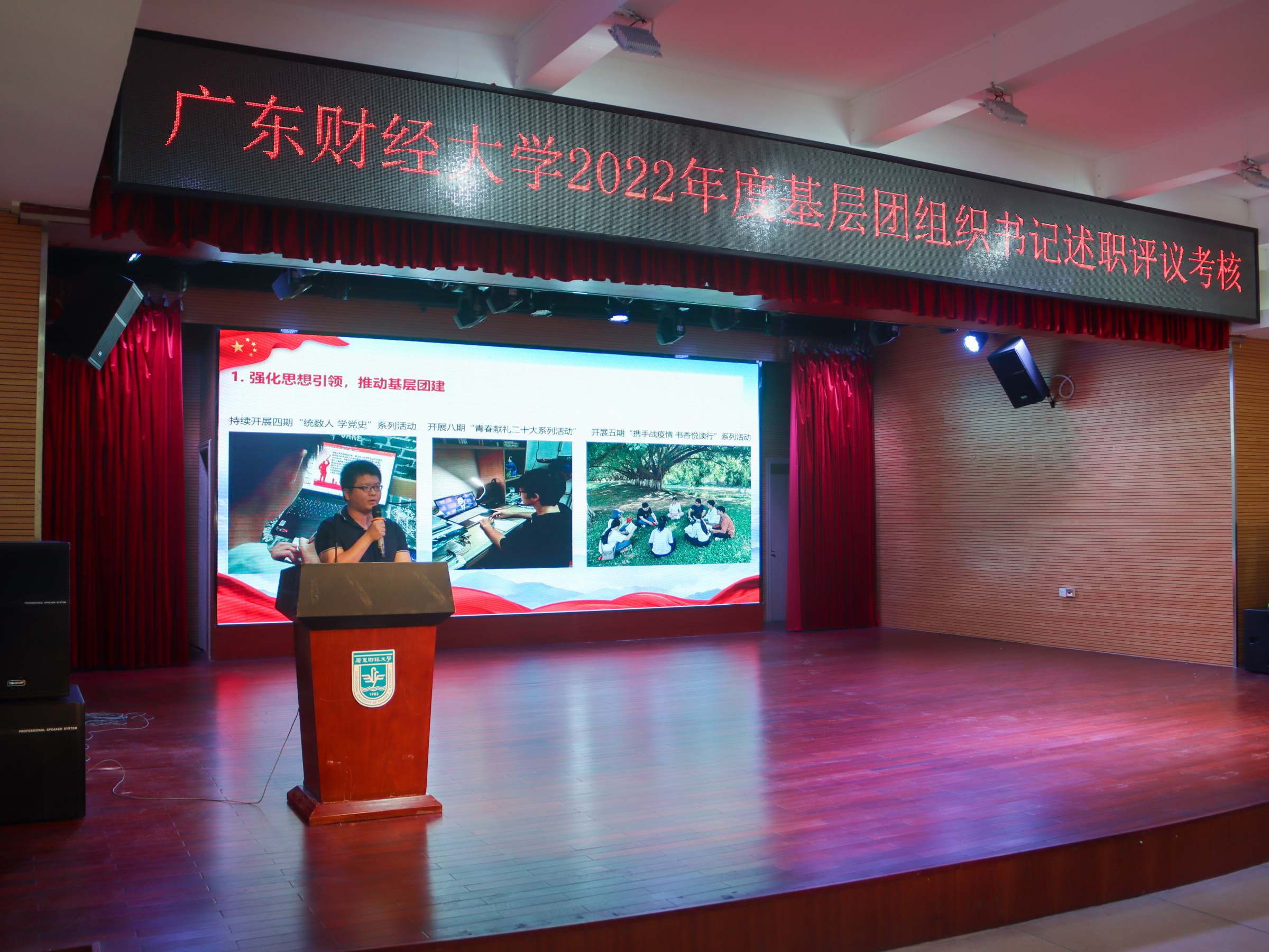 罗贤甲对基层团组织书记的述职表示肯定,同时指出了各基层团组织在团建工作方面存在的短板和不足,就如何进一步加强基层共青团工作总结、经验交流、前瞻谋划提出意见建议。他对学校共青团过去一年的工作予以肯定,对取得的成绩表示祝贺。他强调,学校共青团要全面贯彻落实党的二十大精神,结合校庆40周年重大契机,全面聚焦学校2023年工作会议作出的各项决策部署,为推进学校高质量发展作出应有贡献:一是把贯彻落实党的二十大精神作为首要任务,强化思想武装,夯实政治底色;二是把服务大局作为主题主线,把准职责定位,始终彰显服务本色;三是把作风建设作为根本保证,锐意改革创新,始终淬炼实干成色。他勉励全体团干部要做青年朋友的知心人、青年工作的热心人、青年群众的引路人,为建设大湾区一流财经大学凝聚更加昂扬向上、团结奋斗的青春力量。