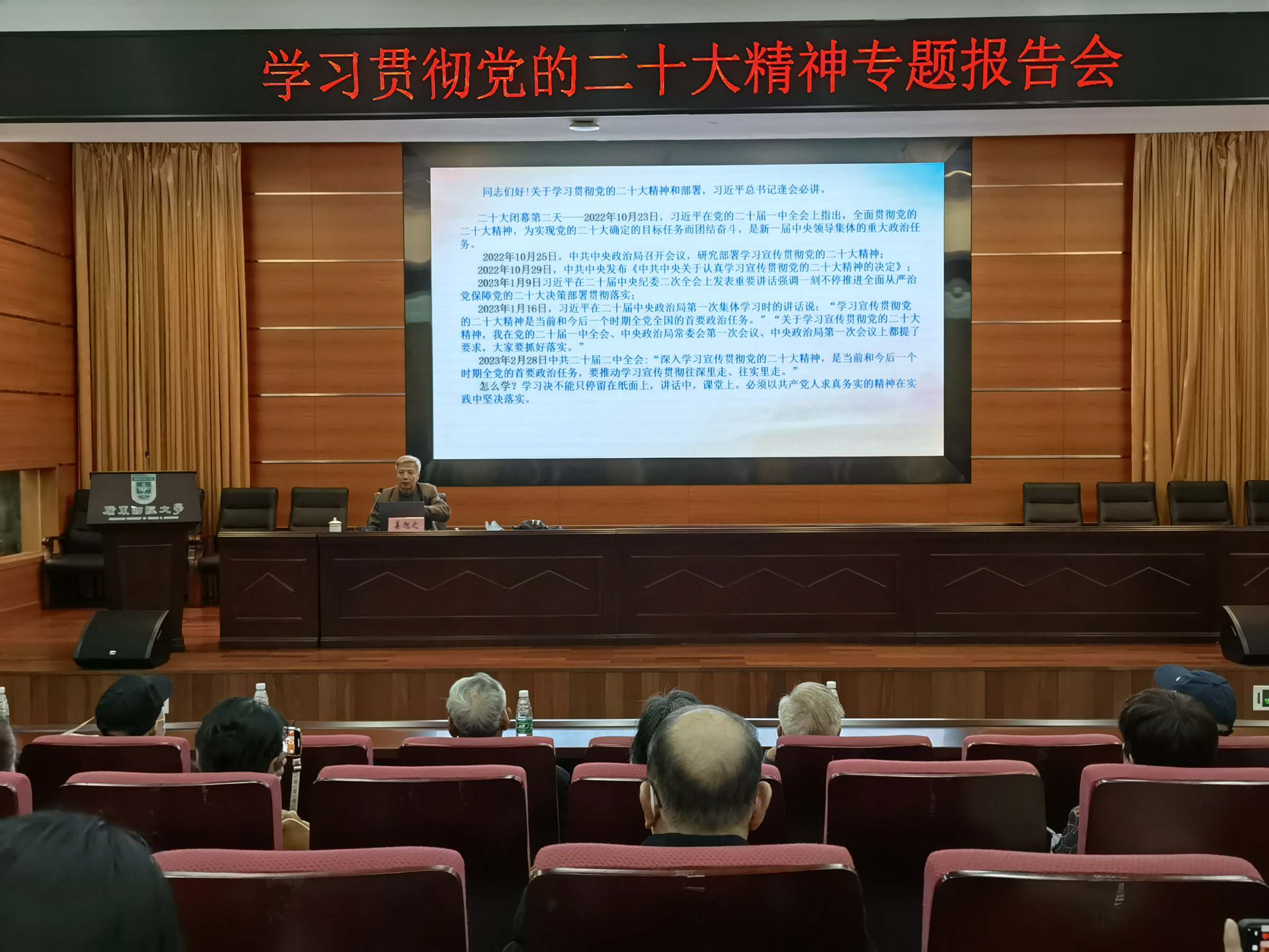 为深入学习宣传贯彻党的二十大精神,积极发挥“五老”理论专长优势,教育引导广大师生听党话、跟党走。3月28日下午,党委学生工作部和离退休教工党总支在综合楼408联合举办了学习贯彻党的二十大精神专题报告会。离退休老党员代表、各学院学生党员代表120人参加了此次专题学习。本次专题报告会由我校公共管理学院退休教授姜旭之主讲,离退休教工党总支书记徐莲香主持。