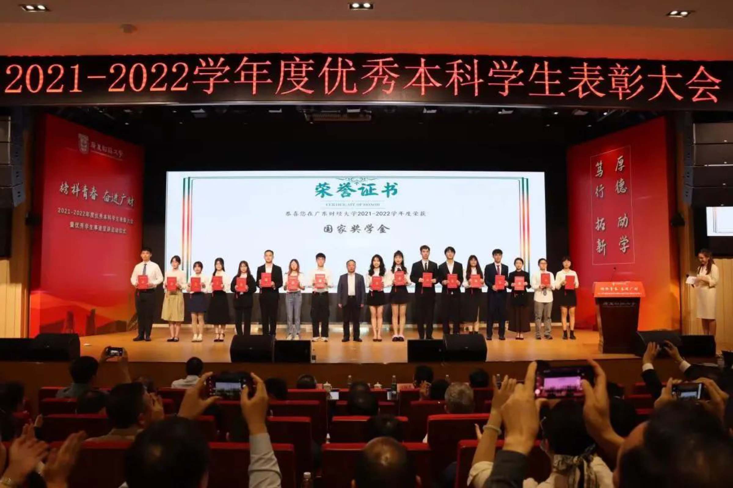4月4日下午,我校2021-2022学年度优秀本科学生表彰大会在佛山三水校区同心楼报告厅举行。校长于海峰,校党委副书记陈树武、刘祖华、罗贤甲,副校长陈国栋、邹新月、丁友刚,相关职能部门负责人,各学院党政负责人及分管学生工作负责人、学工部全体人员、辅导员代表、获奖学生代表和各年级学生代表等参加表彰大会。