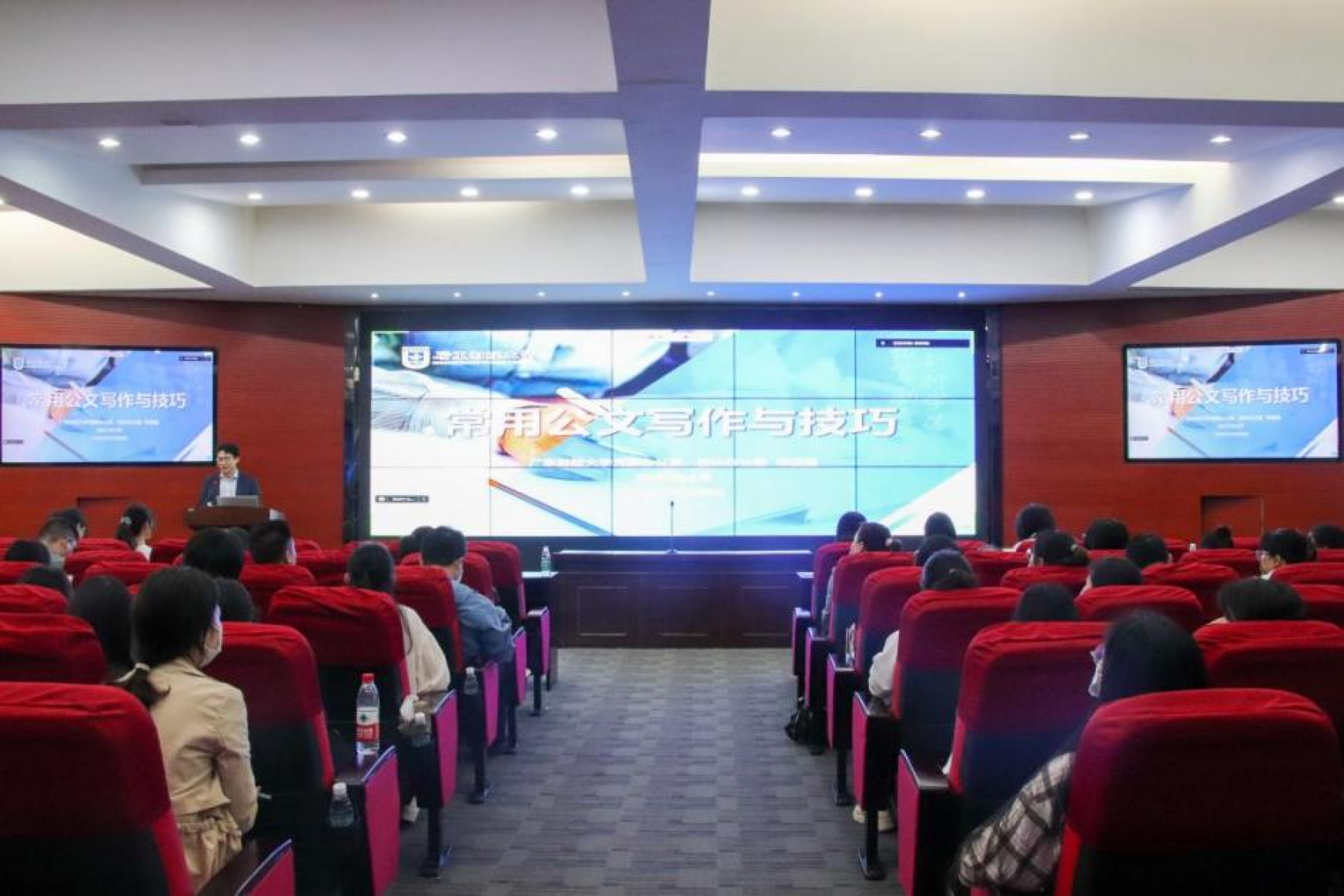 培训中,宋信强系统阐释了公文的特点、功能及基本原则,具体就公文的写作规范、标点符号、公文格式等内容进行了详细讲解。他从多个文种的写作方法与技巧出发,结合学校工作实际对撰写请示、报告、通知、函、纪要,以及工作计划总结类、领导讲话类等常用公文逐一进行了解读,并对公文写作的常见问题进行深入剖析,分享了自己从事公文写作的心得体会。