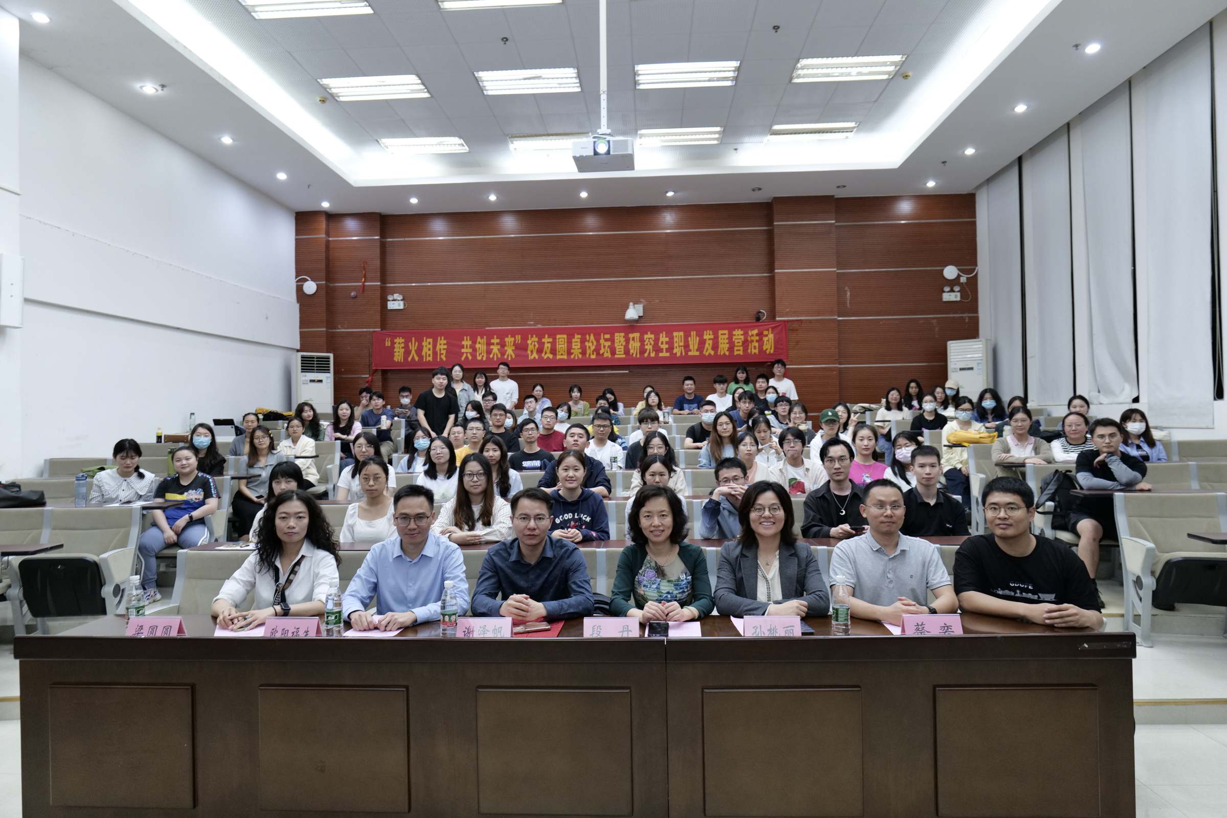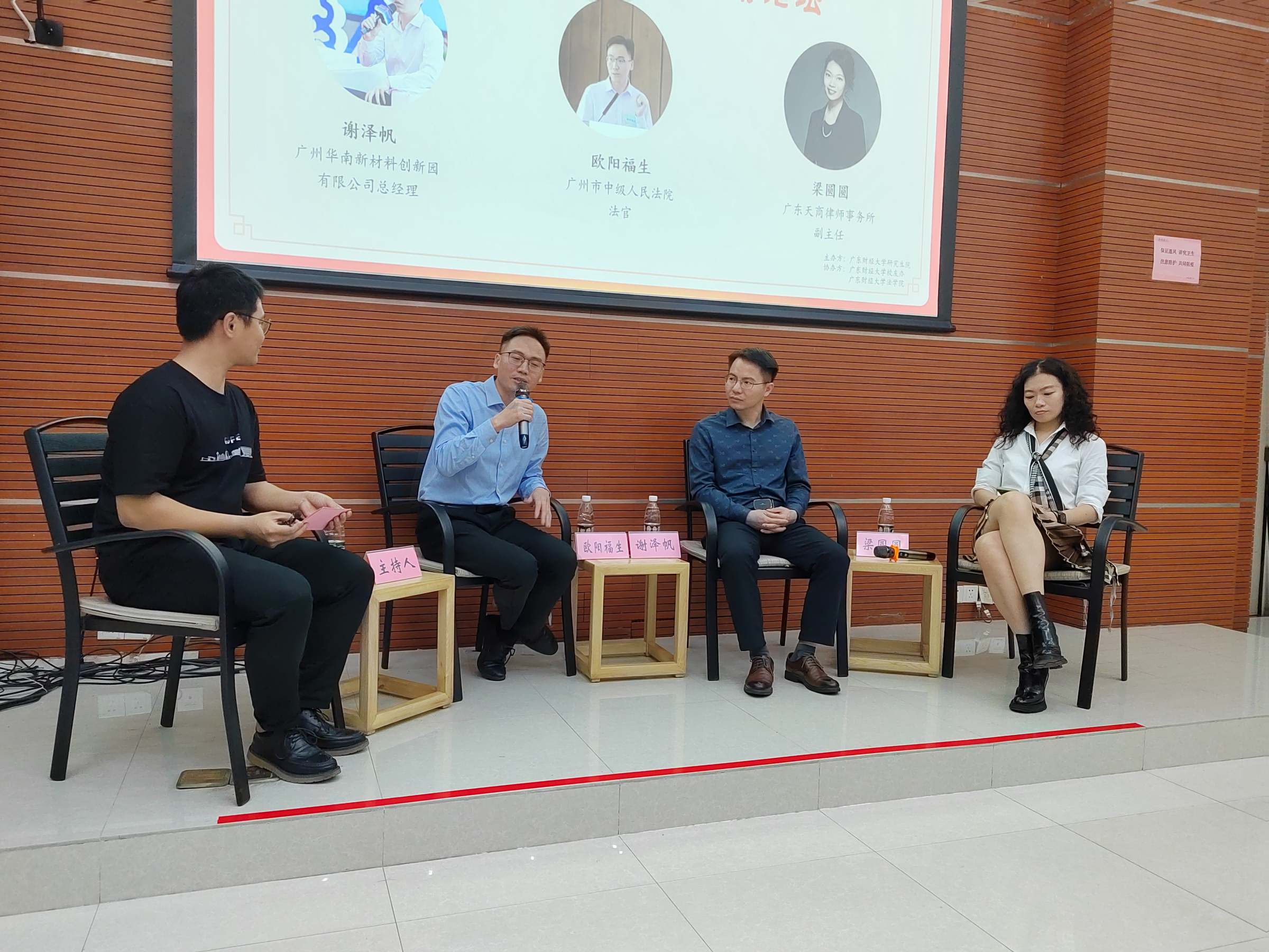 4月11日,研究生院联合校友办、法学院在广州校区举行了以“薪火相传 共创未来”为主题的研究生职业规划校友圆桌论坛。广州华南新材料创新园有限公司总经理谢泽帆、广州市中级人民法院法官欧阳福生、广东天商律师事务所高级合伙人梁圆圆三位校友作为论坛嘉宾,出席本次活动的还有校友办段丹主任、研究生院孙桃丽副院长、研究生院思政办蔡奕主任,以及各培养单位研究生代表,会议由研究生会主席团成员朱春森主持。