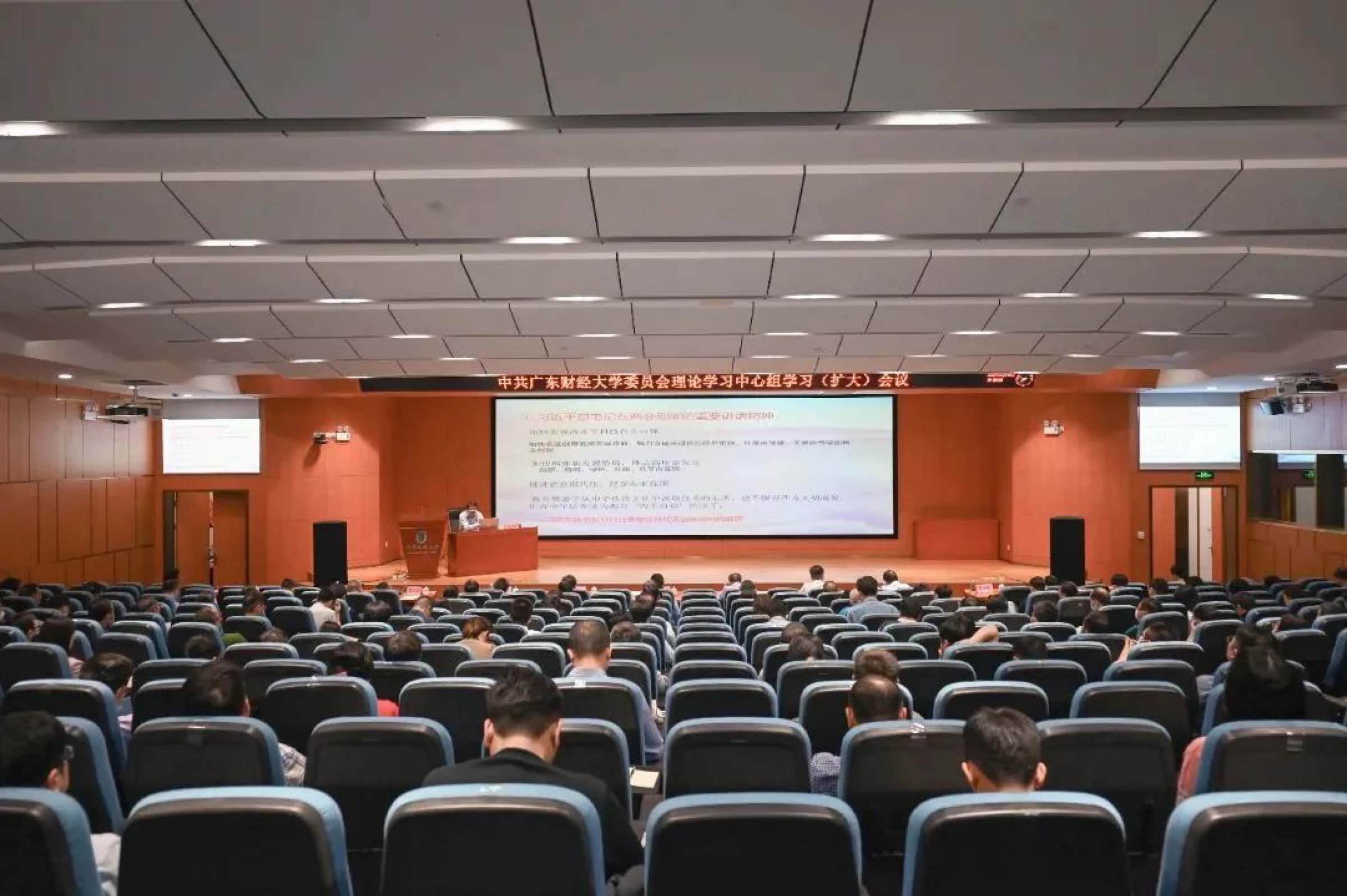 4月6日下午,学校召开党委理论学习中心组学习扩大会议,学习宣传贯彻党的二十大精神、习近平总书记在全国两会期间的重要讲话精神以及全国两会精神。校领导,校党委理论学习中心组成员,全体中层干部,各民主党派、知联会、侨联负责人150余人在广州校区正心堂参加会议,佛山校区设立分会场同步参加,校长于海峰主持会议。