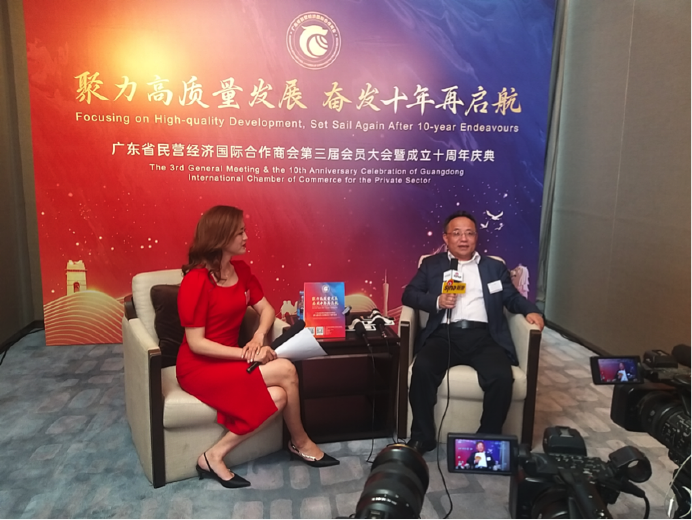 4月9日下午,广东省民营经济国际合作商会(以下简称“商会”)第三届会员大会暨成立十周年庆典在广州保利洲际酒店隆重举行。1000多名嘉宾出席本次庆典,共话国际合作新机遇,共谋广东高质量发展新篇章。校长于海峰受邀出席并在现场接受多家媒体记者专访。