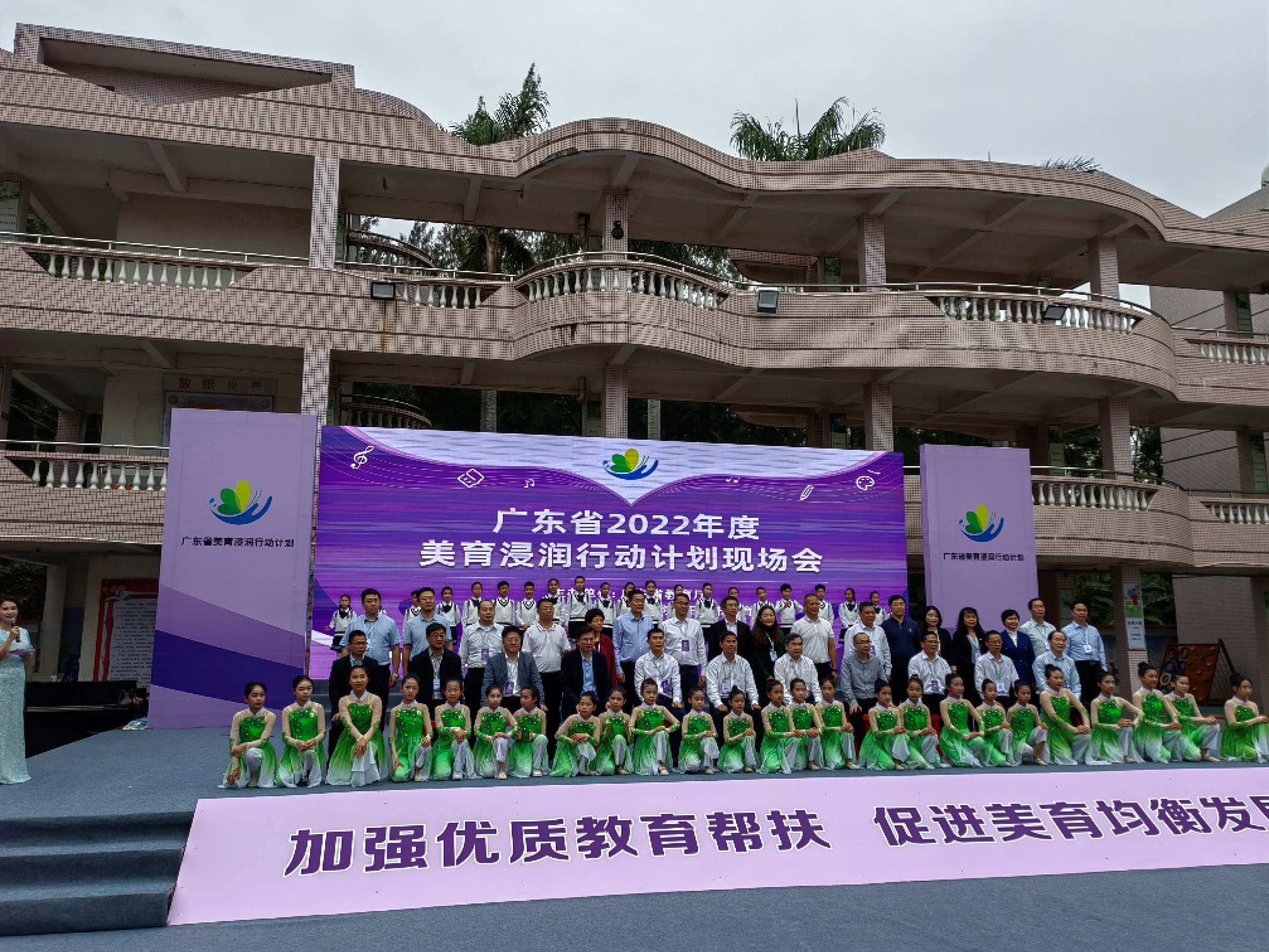 广东省美育浸润行动计划由广东教育厅统筹组织,旨在进一步落实中共中央、国务院《关于全面加强和改进新时代学校美育工作的意见》和《教育部办公厅关于开展体育美育浸润行动计划的通知》等文件精神,于2020年启动,2022年度广东省美育浸润行动计划共组织了28所高校和15个地市教育局参与,惠及粤东粤西粤北经济欠发达地区贫困农村中小学校共192所,覆盖辐射受益学生达到三十四万余人。按照育人为本、特色发展、协同推进的工作原则,定向精准帮扶和志愿服务,推动了中小学美育日常化、多样化、特色化发展,提高了全省尤其是经济欠发达地区贫困中小学的美育教学水平和教育质量。