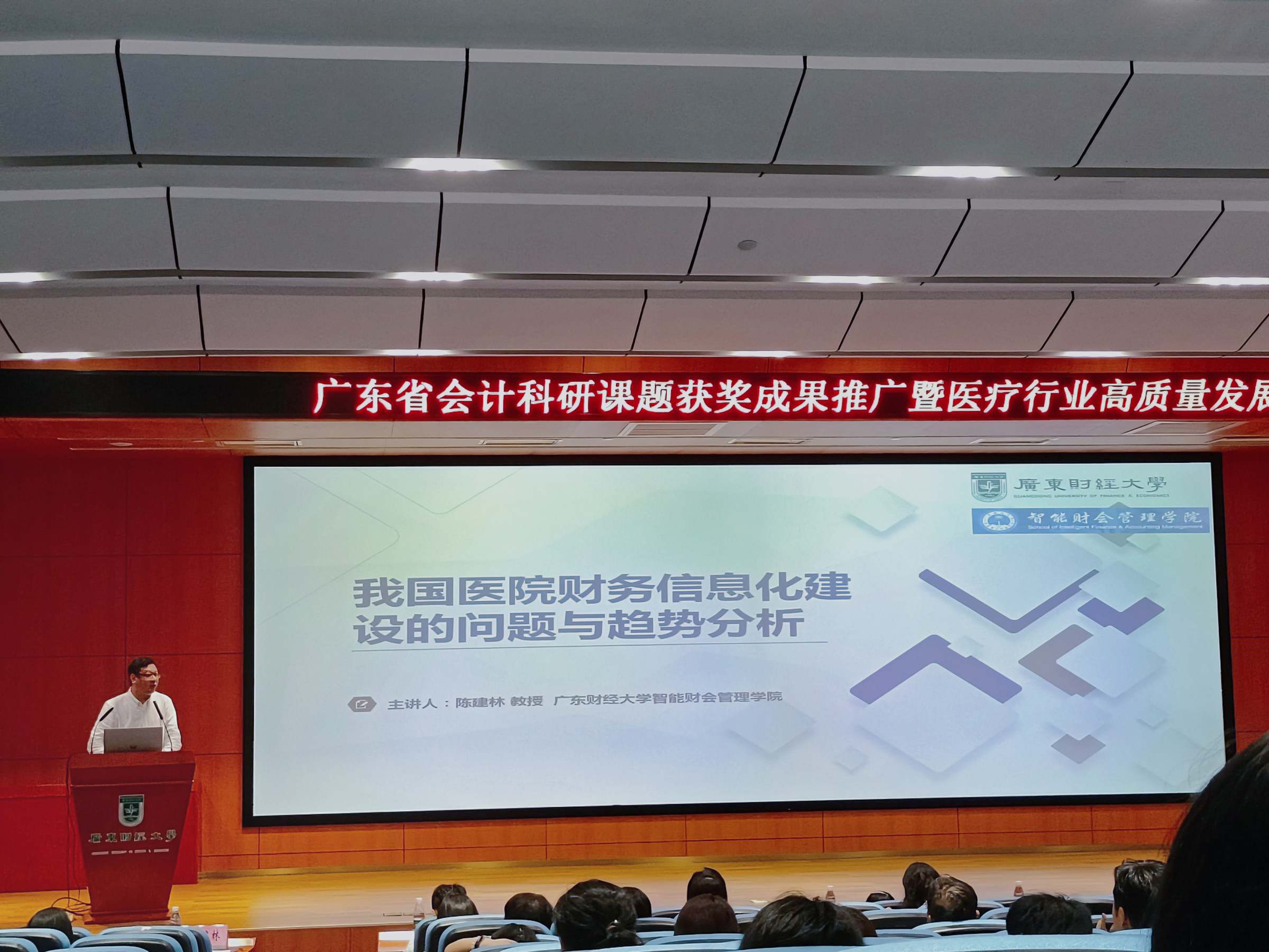 研讨会由广东省会计学会秘书长陈焕桂主持。副校长丁友刚、广东省财政厅会计处一级调研员古小丽、广东省人民医院信息管理处副处长李丹、南方医科大学第三附属医院总会计师张友昌、会计学院院长雷宇、智能财会管理学院院长陈建林等领导嘉宾,以及来自广东省会计学会的医疗财会行业相关人士、我校师生200余人参加此次活动。