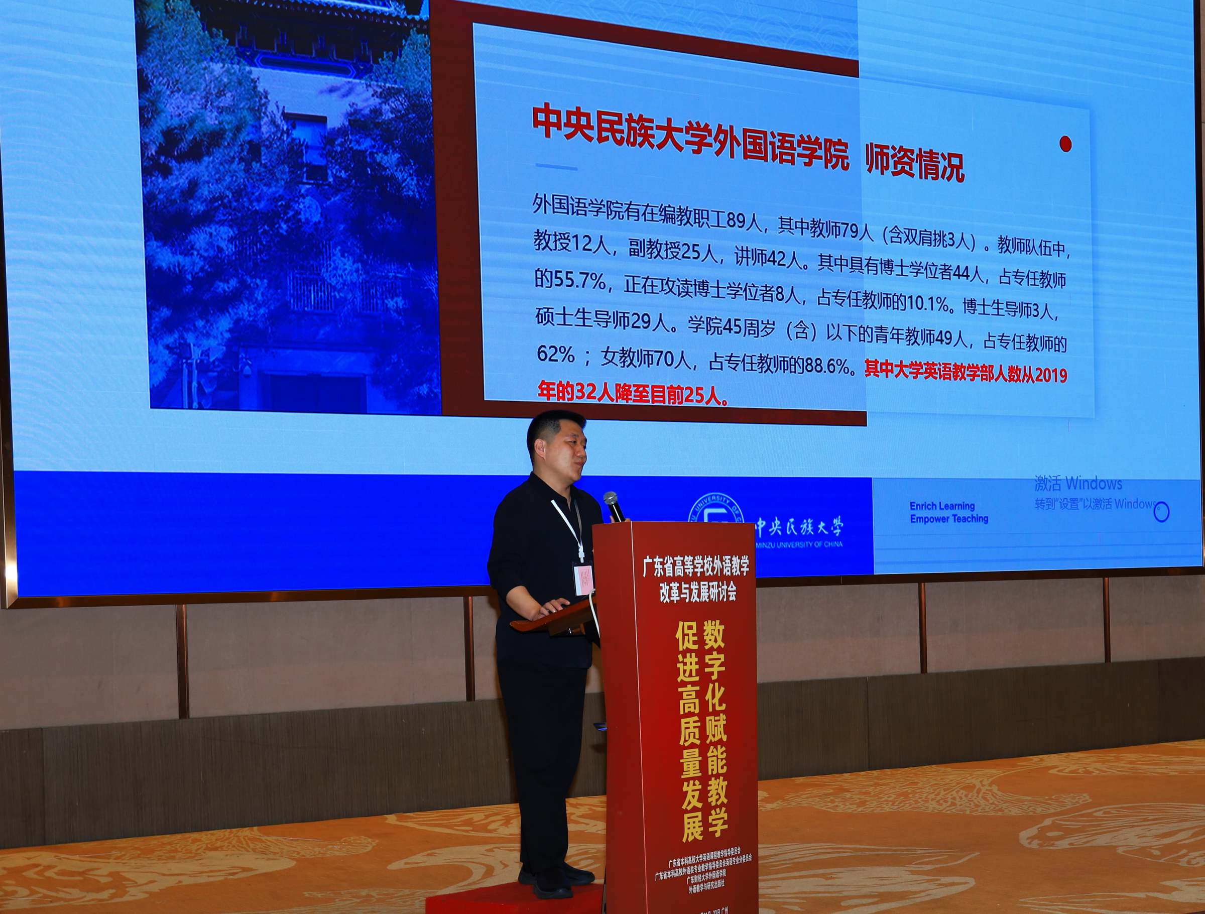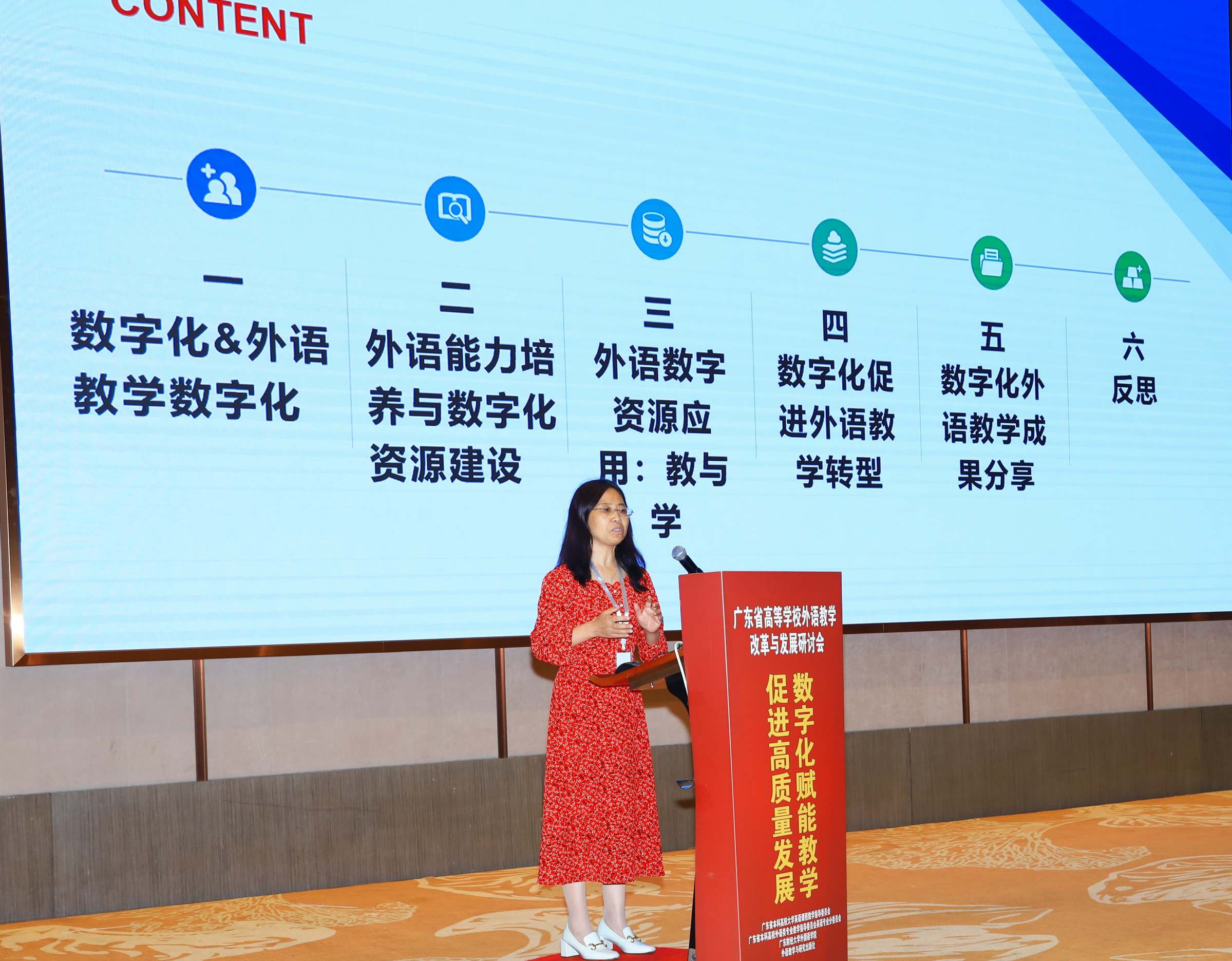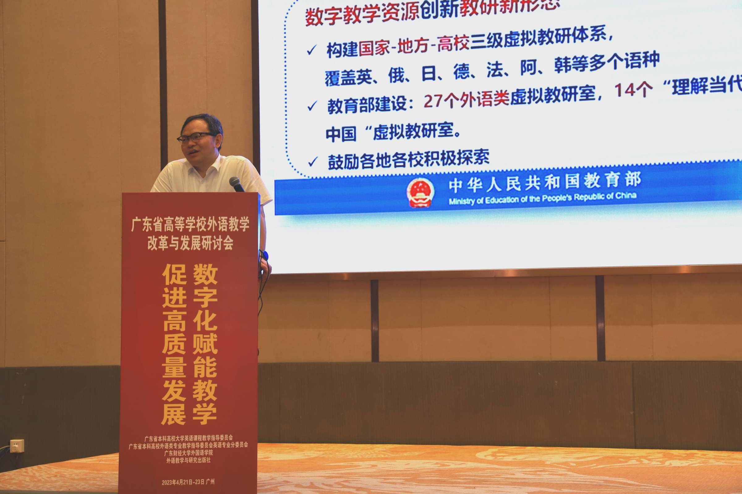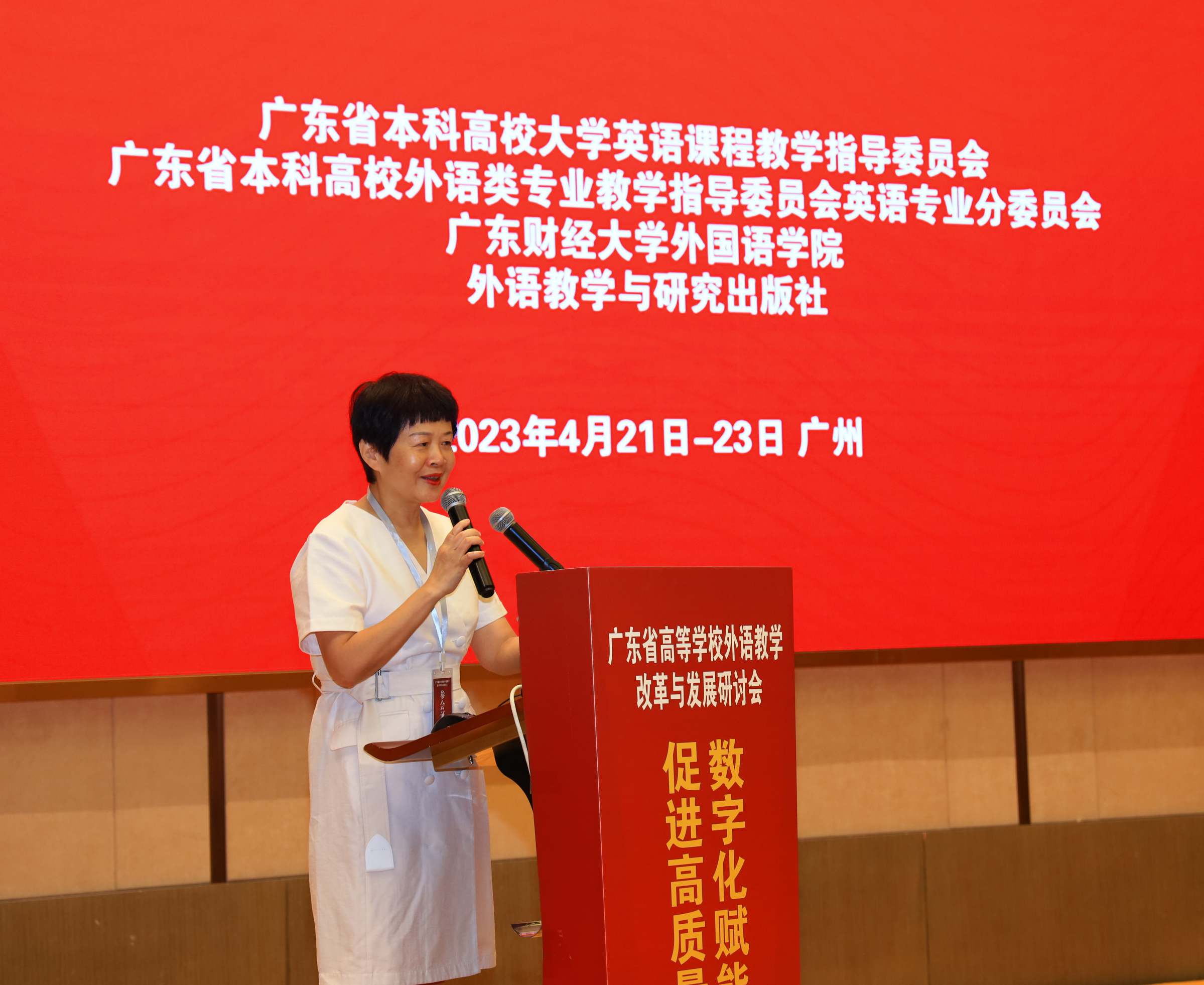 4月22日,我校举办了“广东省高等学校外语教学改革与发展研讨会”。大会由广东省本科高校大学英语课程教学指导委员会、广东省本科高校外语类专业教学指导委员会英语专业分委员会和外语教学与研究出版社联合主办,会议主题为“数字化赋能教学,促进高质量发展”。广东省高校外语教育领域的专家学者及骨干教师齐聚一堂,聚焦外语教师数字素养提升、数字赋能外语教学等议题,交流大学英语及英语类专业教学数字化探索与实践,探讨新时期外语学科新发展、新机遇、新形态、新范式,以数字化赋能外语教学改革,推动外语教育高质量发展。广东省40余所本科高校外语院系负责人及骨干教师参会,外国语学院院长陈冬纯教授主持开幕式。