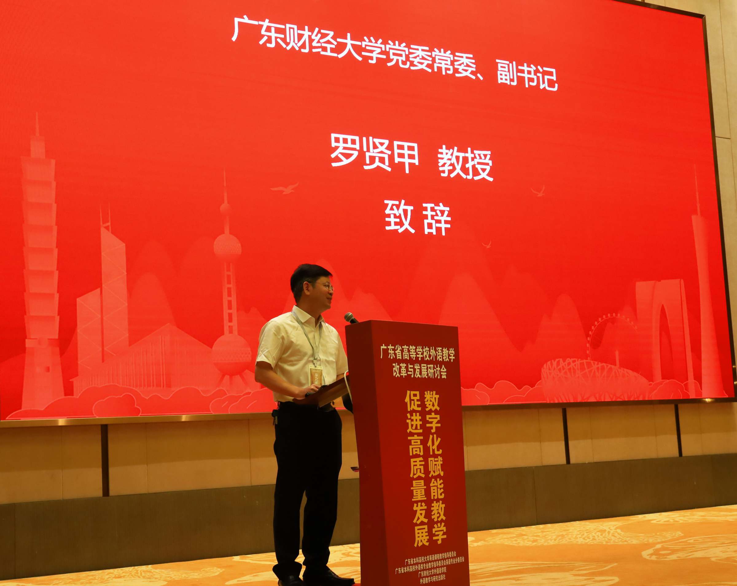 校党委副书记罗贤甲致辞指出,”推进教育数字化,建设全民终身学习的学习型社会、学习型大国”是党的二十大报告提出的战略部署,本次研讨会响应国家战略要求,具有重大的时代意义和现实意义。他介绍广东财经大学在围绕数字货币、科技金融、数字资产、数字财税、数字贸易、数据价值等领域开展的探索与实践。