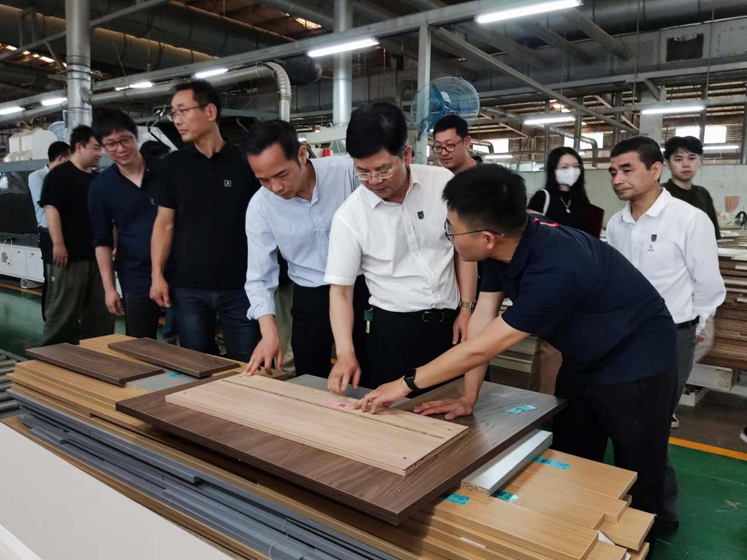 我校领导、师生及广东省工业设计协会一行,在魏海利等企业领导陪同下,深入生产区参观了联邦家私的CNAS国家实验室、“大城工匠”雕刻工坊、车间生产线及联邦总部大楼中的全案设计展示空间和办公环境等,多方面了解和体验联邦家私集团的企业文化。