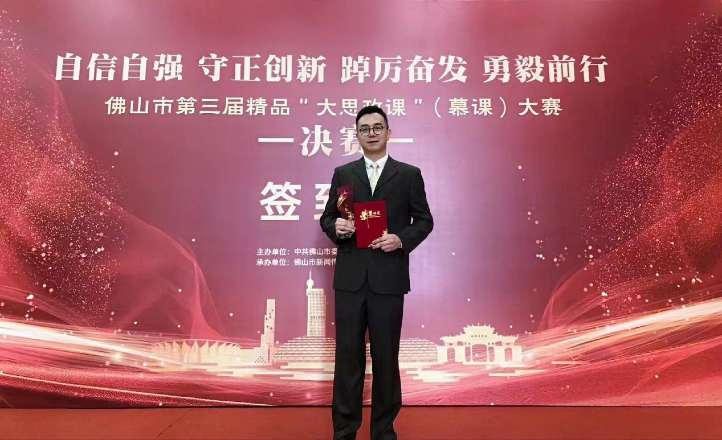 4月26日,佛山市第三届精品“大思政课” (慕课)大赛决赛在佛山市新闻中心一号演播厅举行。经过三轮比赛的激烈角逐,湾区影视产业学院田丰老师以精彩的演绎、潇洒沉稳的台风从近百名参赛选手中脱颖而出,斩获高校教师组一等奖。