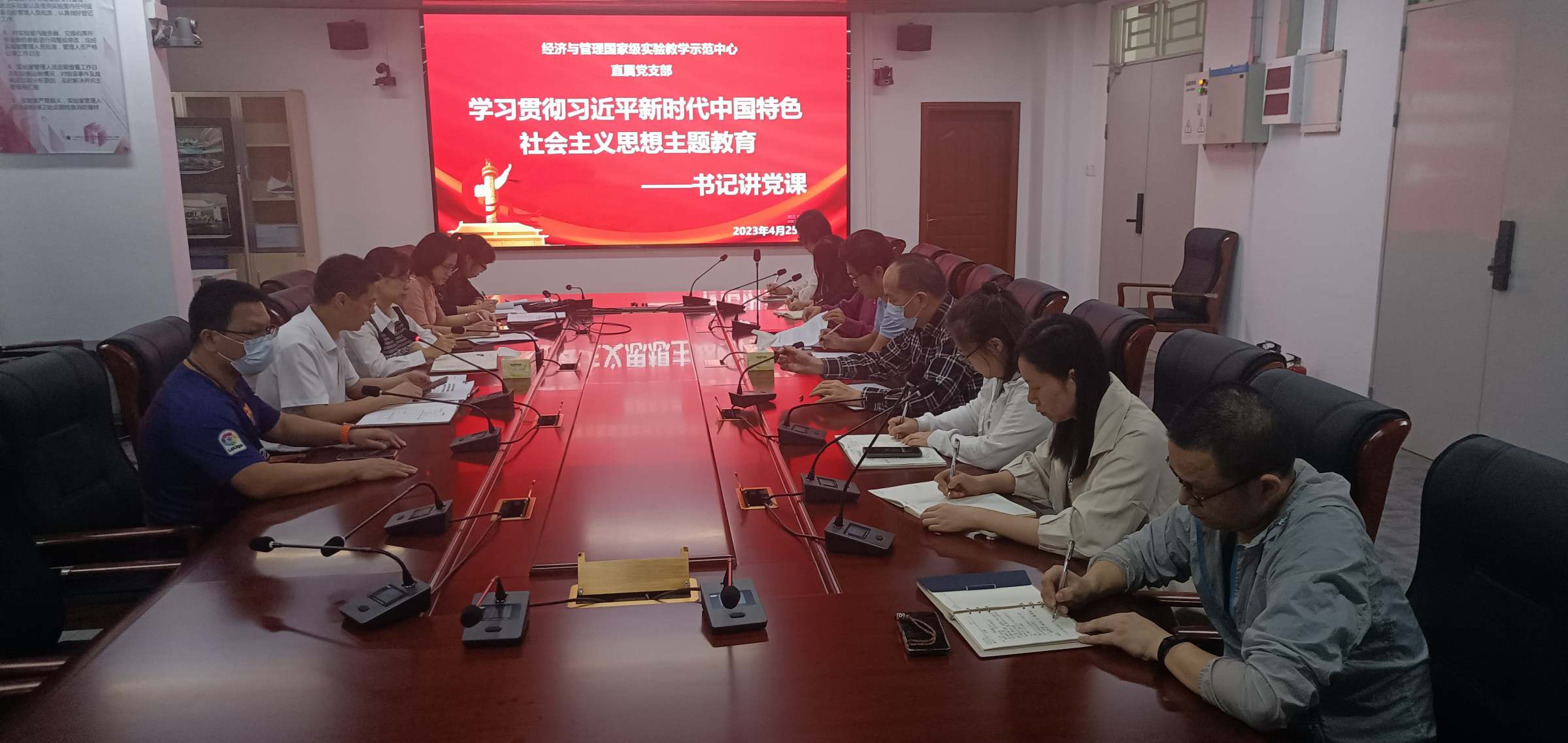 4月25日下午,经管中心直属党支部书记姚维保在北四404室为全体党员讲授专题党课,主题是“学习贯彻习近平总书记在广东考察时重要讲话精神,推动新商科实验教学新生态改革发展”。