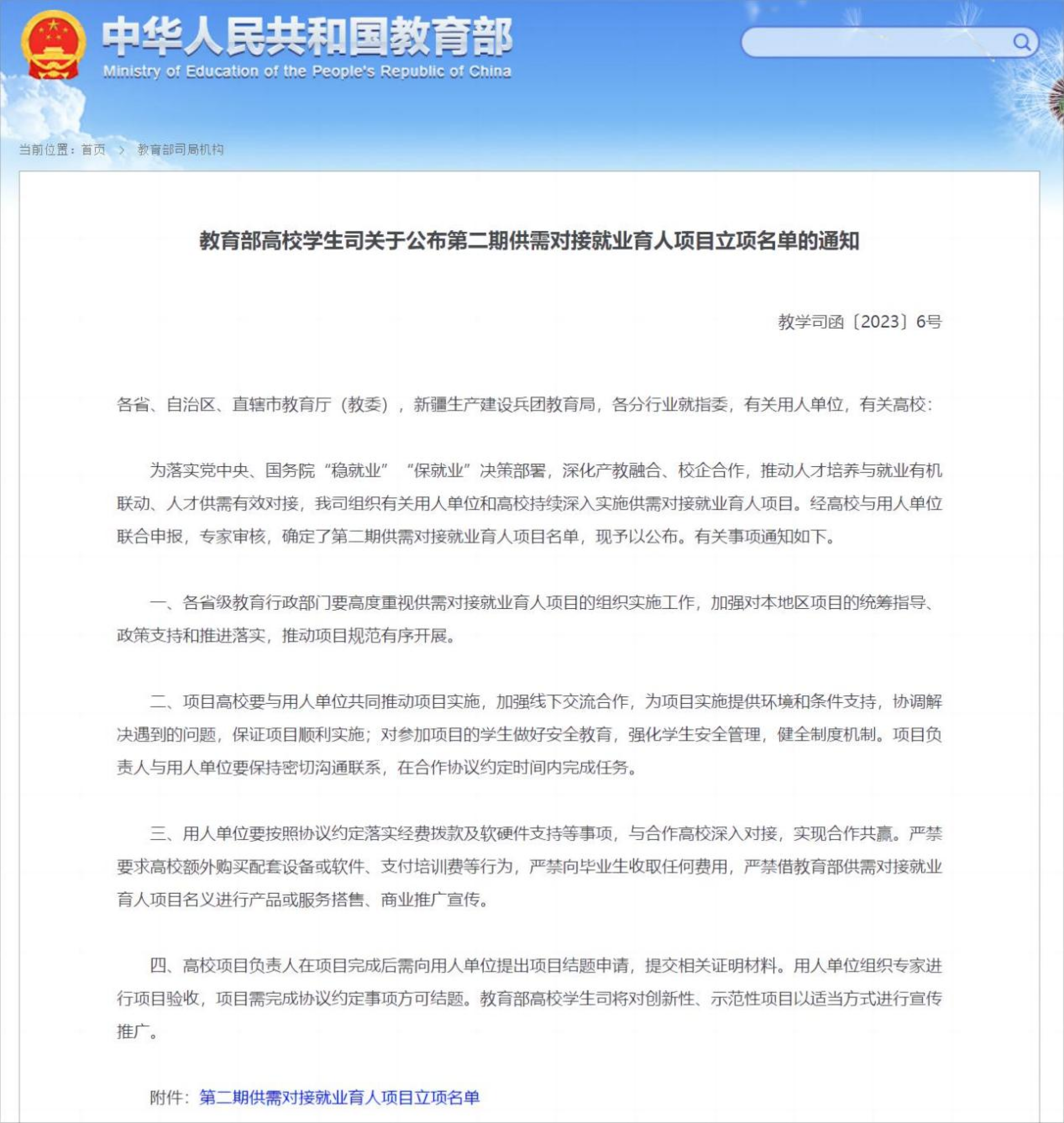 近日,教育部公布了第二期供需对接就业育人项目立项名单。由我校湾区影视产业学院黄翔老师主持申报的“定向人才培养探索与实践”和“就业实习基地与人才培养探究”两个项目获得立项。