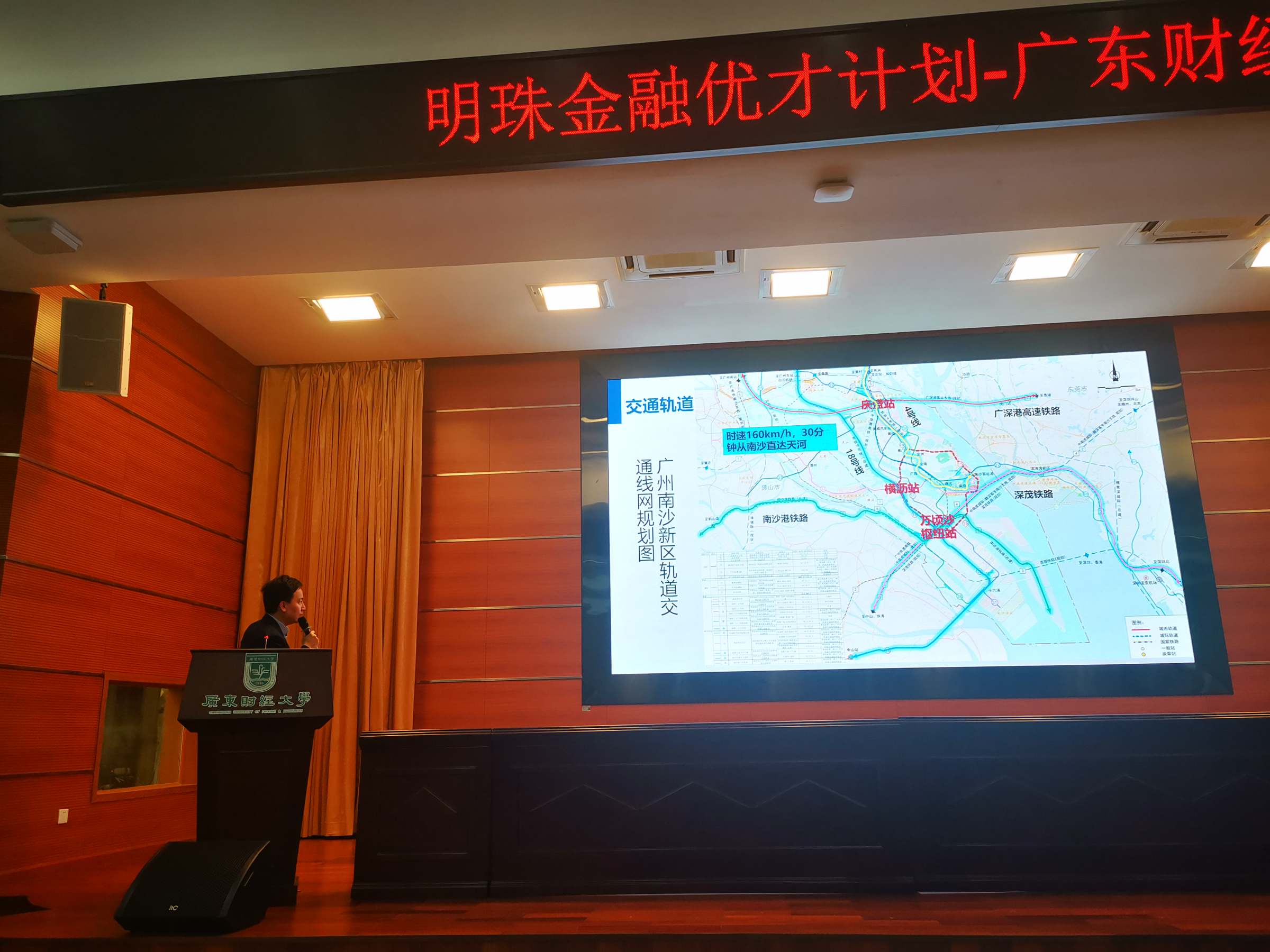 副校长邹新月致辞指出,在当前全党深入开展学习贯彻习近平新时代中国特色社会主义思想主题教育之际,举办“明珠金融优才计划”宣讲会正当其时。南沙是粤港澳大湾区建设的重大战略平台,我校金融学科具备完善的人才培养体系,能够有效对接南沙发展的金融人才需求,此次活动的举办,为广财学子施展才华提供了更多的选择和机会,希望广大的广财学子通过南沙服务湾区、走向世界、实现自己的人生理想。