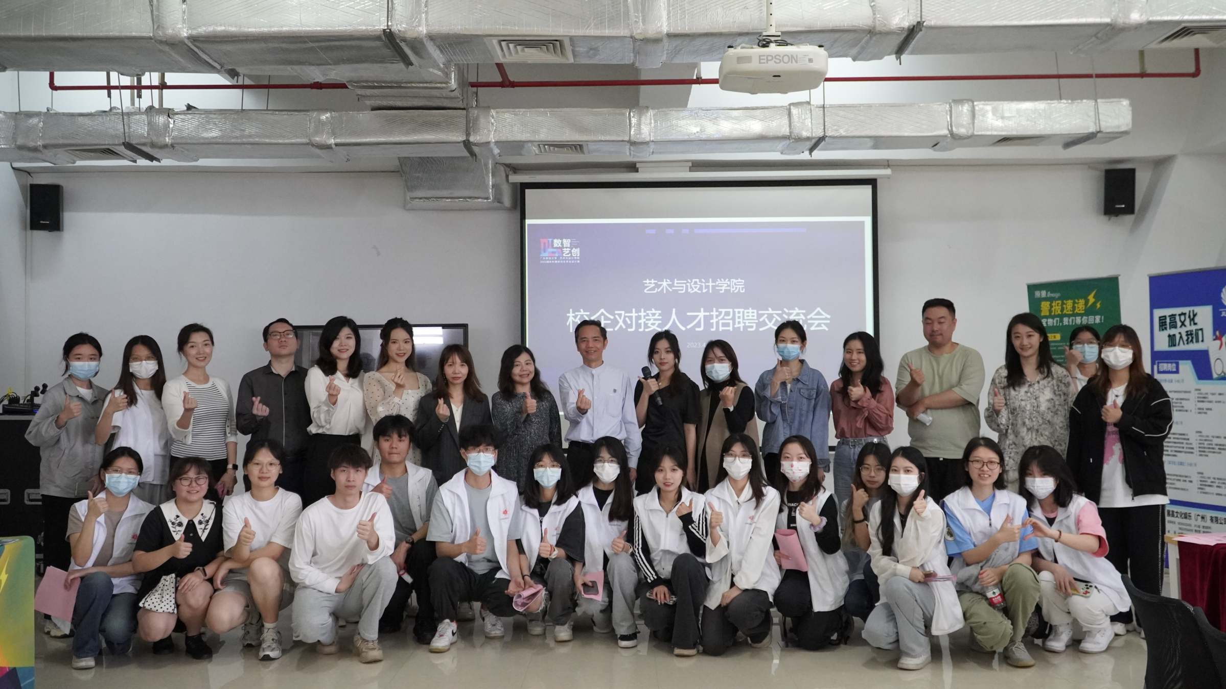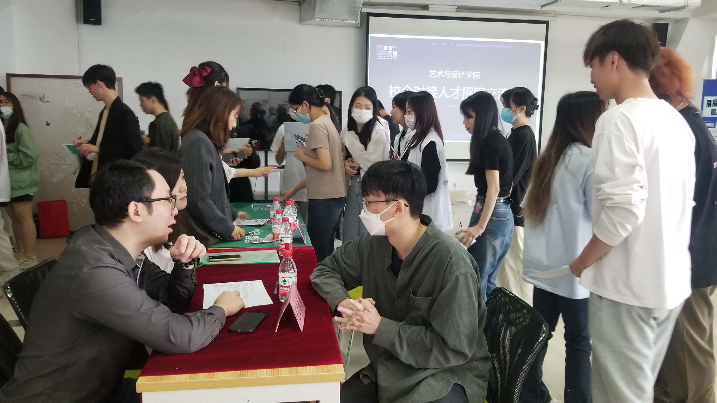 4月28日,“数智·艺创”——艺术与设计学院2023届本科暨研究生毕业设计展览在广州校区图书馆开幕,学院校企对接人才招聘会同期举行,吸引30多家用人单位代表和300余毕业生、在校实习生参加人才对接交流。艺术与设计学院党委书记杨长春、党委副书记林强、毕业班辅导员陈琪出席活动。学院团委学生会执行主席曾玥主持开幕式。