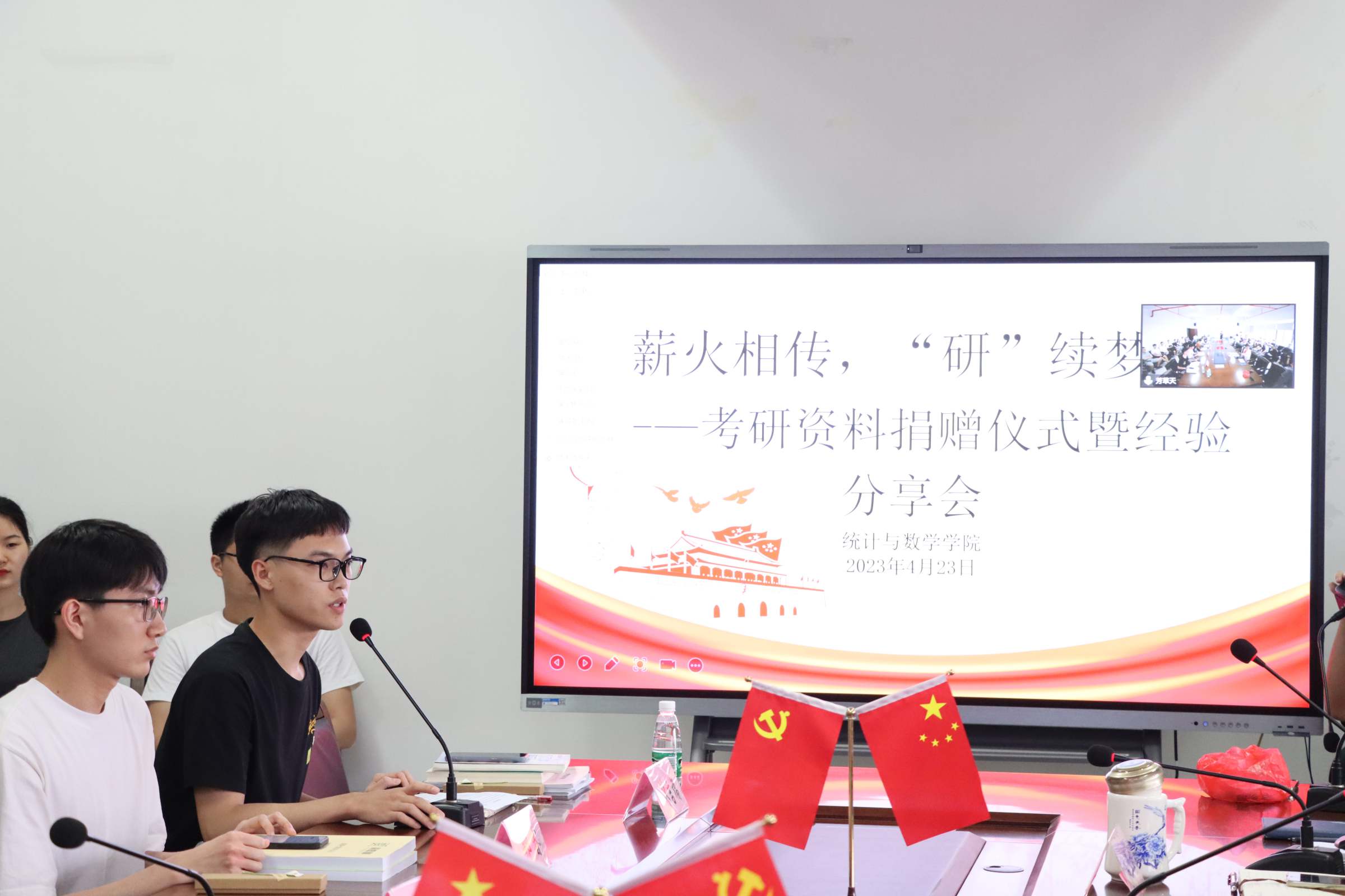 4月23日,统计与数学学院举办“薪火相传,‘研’续梦想”——考研资料捐赠活动暨经验分享会。学院党委书记林守忠、院长黄辉、副书记聂华丽、2019级辅导员冯梦瑶以及2019级考研学子、研究生在读同学,各年级考研意向同学线上线下共计约600人参会。