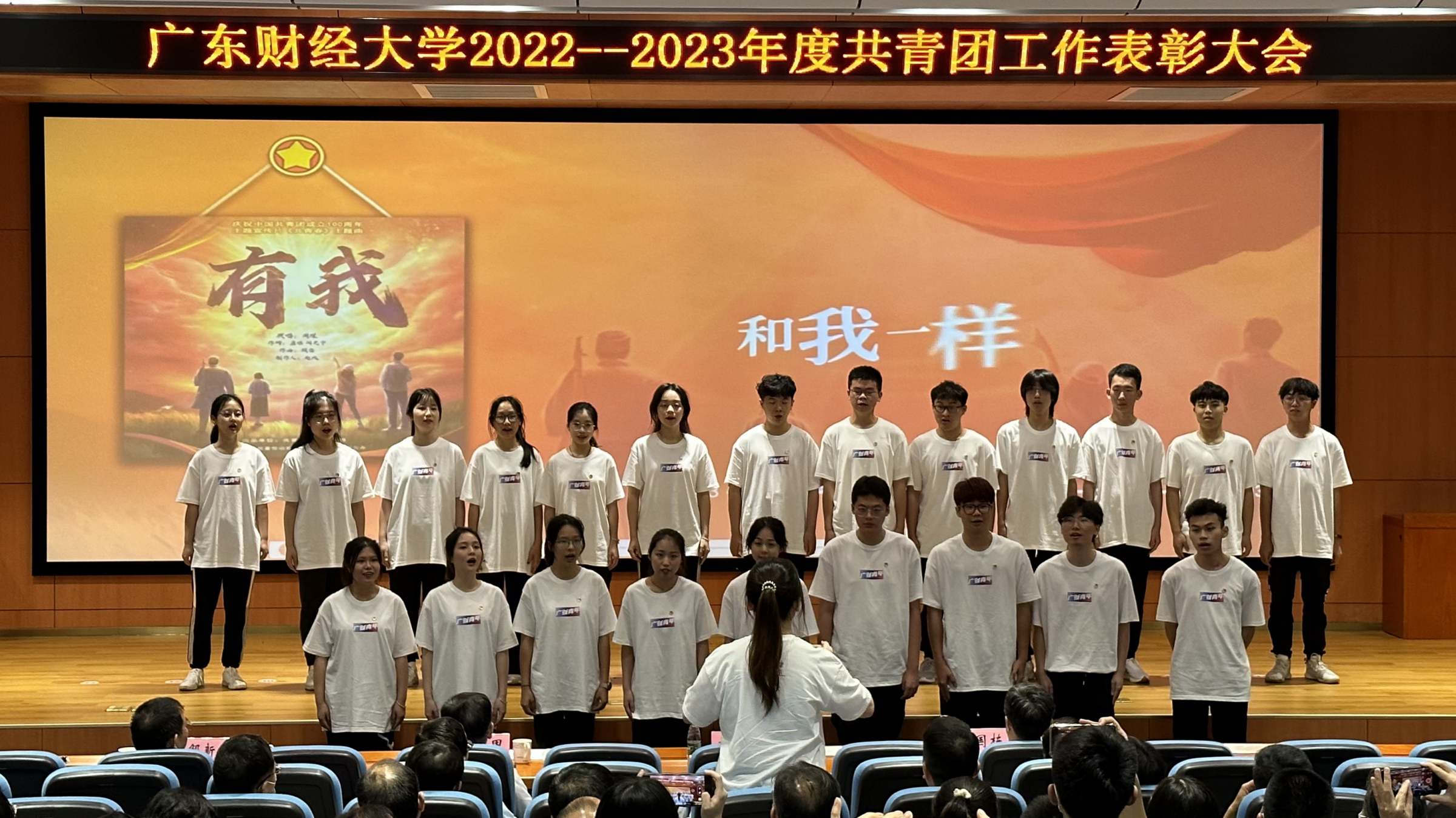 会上,校大学生艺术团合唱队现场演唱《有我》。最后,大会在嘹亮的校歌声中落下帷幕。