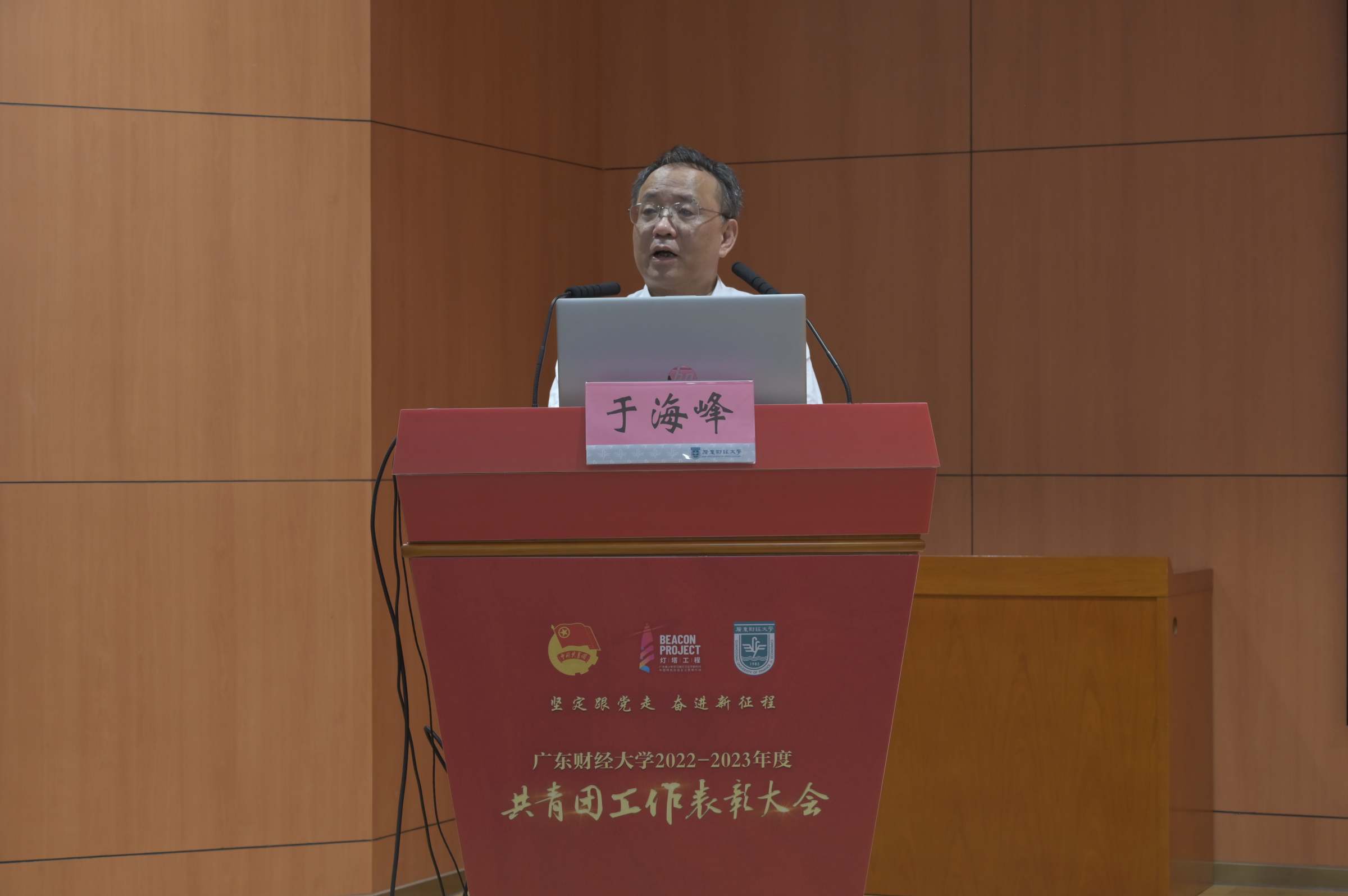 于海峰指出,当前,学校正处于高质量发展的关键时刻。学校共青团要充分发挥作为党的忠实助手和可靠后备军的作用,紧紧围绕学校党委的决策部署和学校中心任务,团结带领广财青年以走在前列、干在实处的责任感使命感紧迫感,真抓实干、埋头苦干,扎扎实实办好我们自己的事。他提出四点意见与大家共勉:第一,要着力增强思想政治引领实效,建强建好政治学校,团结带领广财青年坚决扣好有理想的“扣子”。第二,要着力推动青年团员建功新时代,凝练铸就先锋力量,团结带领广财青年坚决扛起敢担当的“担子”。第三,要着力提升实践育人功能发挥,搭好实践淬炼平台,团结带领广财青年坚决走好能吃苦的“路子”。第四,要着力完善党建带团建机制,砥砺建设先进组织,团结带领广财青年坚决夯实肯奋斗的“底子”。