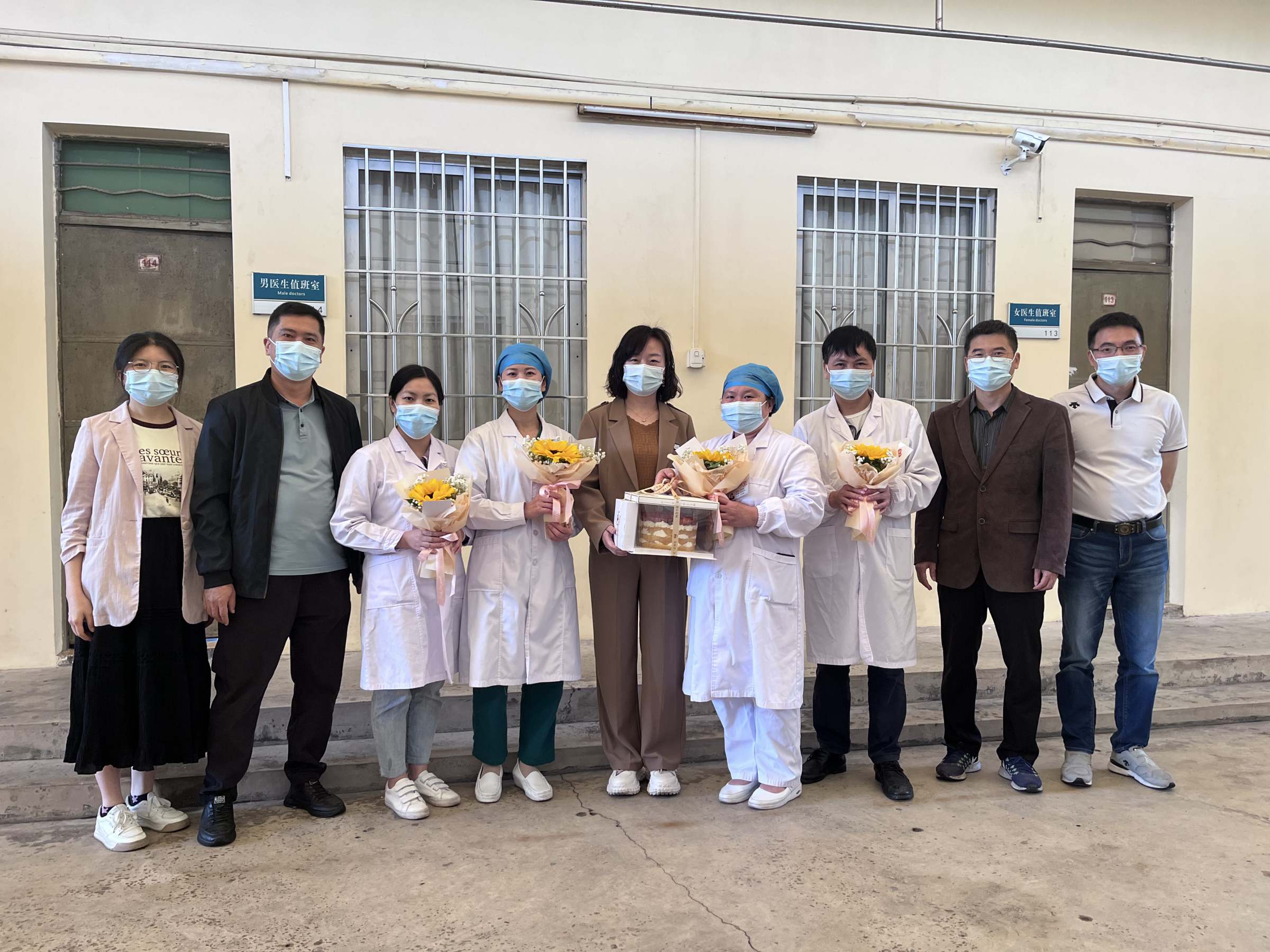 “节日快乐!”郑田一行来到校区医务室为医务工作者们送上新鲜的蛋糕和鲜花,祝愿白衣天使们身体健康、工作顺利,对他们为了校区的医疗安全和师生员工身体健康所做出的辛勤付出表示感谢。