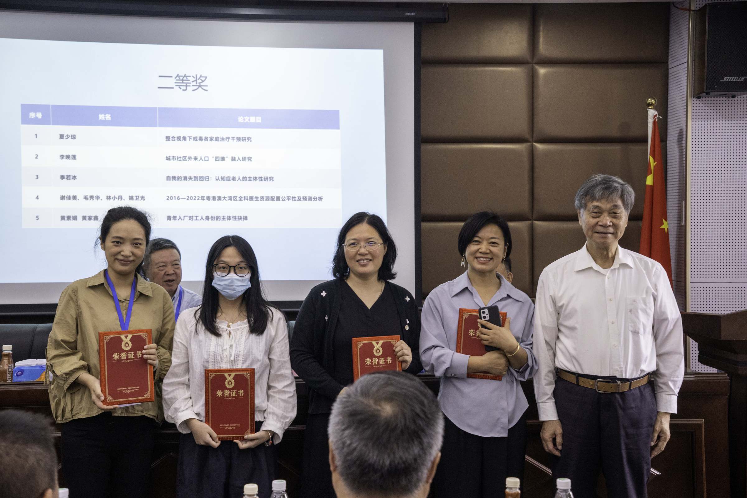会议第四个环节是“2022学术年会获奖论文颁奖”,来自广州市委党校的霍秀梅教授、南方医科大学的谢佳美教授、广州大学的谢俊贵教授等学者分获一、二、三等奖。颁奖结束后,2023年学术年会承办方广东技术师范大学代表杨文炯院长作表态发言,诚邀各位学者、老师、同学们参与预期7月在广东技术师范大学举行的学术年会。