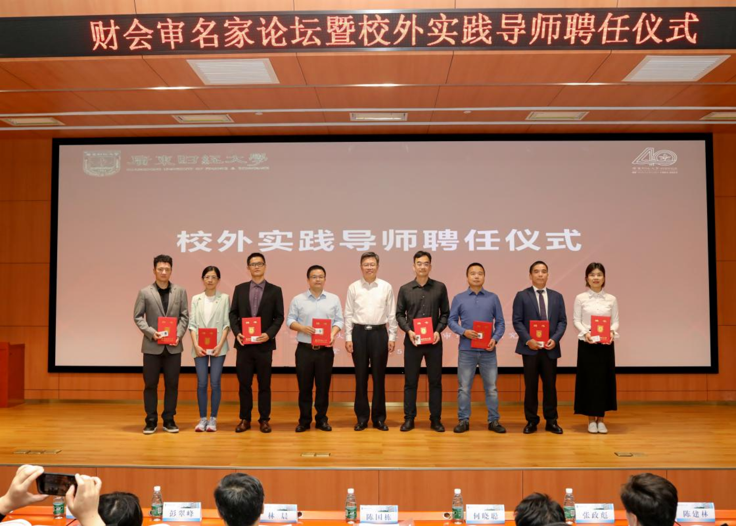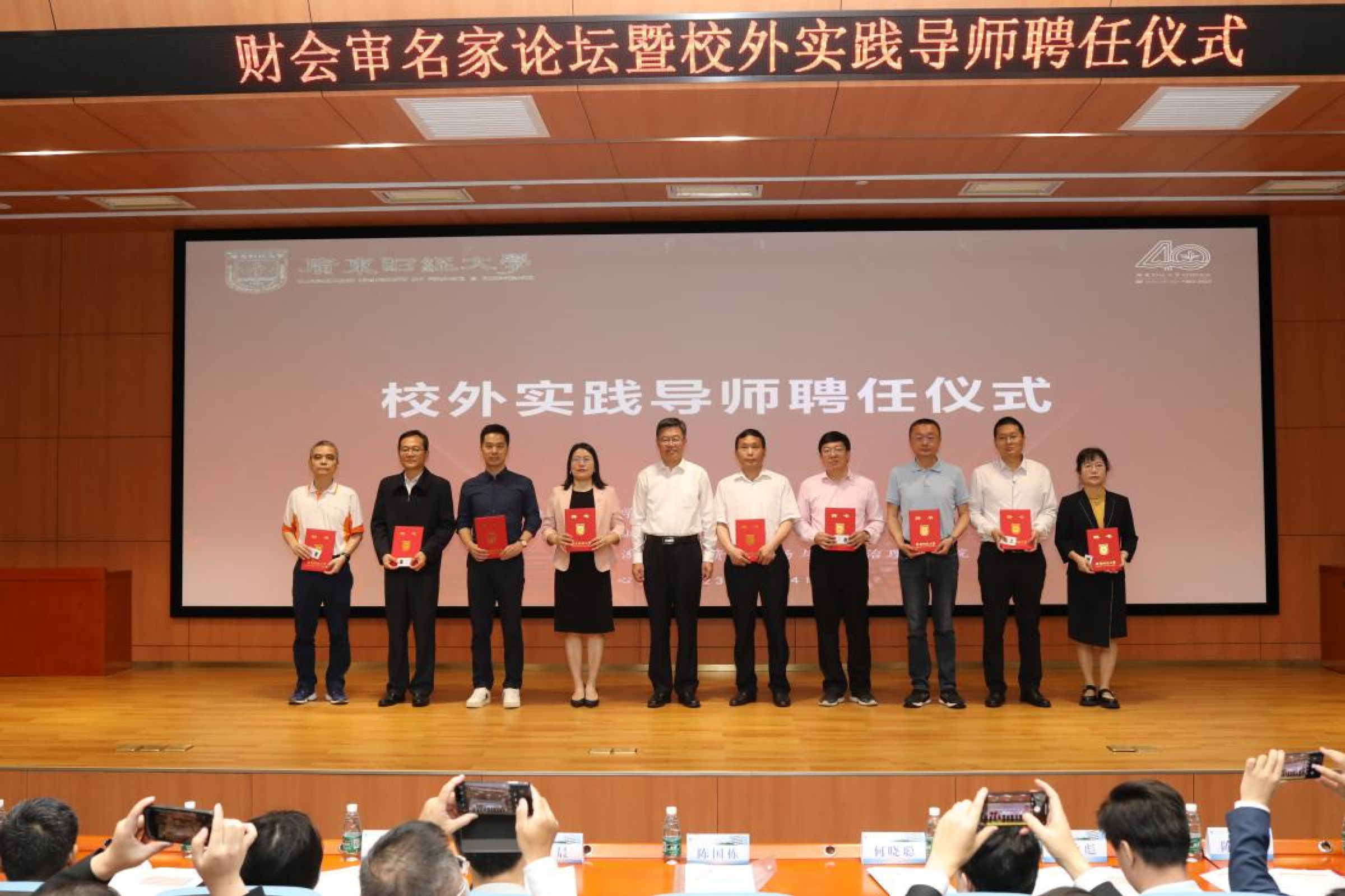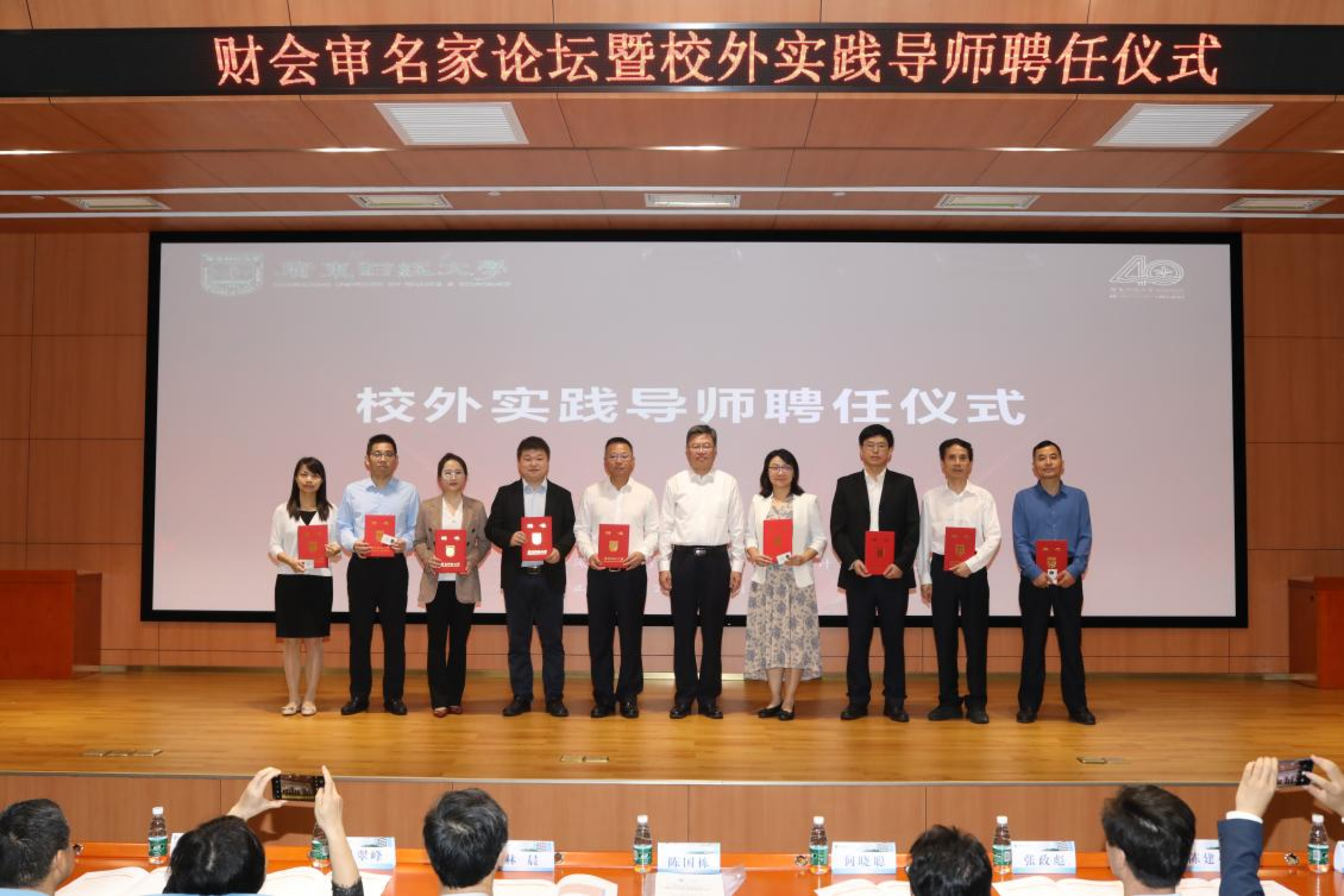 5月14日上午,由会计学院、智能财会管理学院和粤港澳大湾区资本市场与审计治理研究院共同主办的“财会审名家论坛暨校外实践导师聘任仪式”在广州校区正心堂隆重举行。我校副校长陈国栋,香港大学协理副校长林晨,我校研究生院副院长何晓聪,会计学院、智能财会管理学院党政领导,会计硕士和审计硕士校外实践导师等出席,会计硕士、审计硕士研究生参加学习。论坛和仪式由会计学院院长雷宇主持。