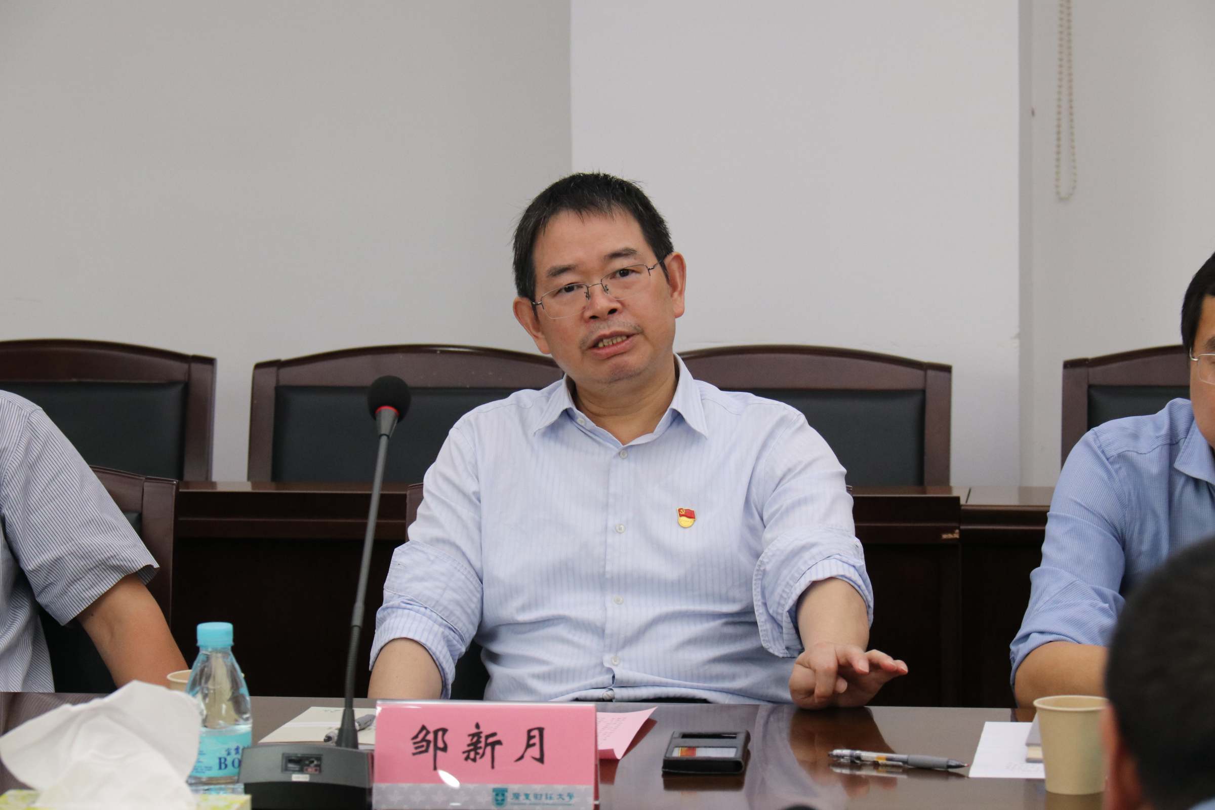 邹新月对广东金融学院调研组一行的到来表示热烈欢迎,对广东金融学院给与学校发展的支持和帮助表示衷心感谢。并详细介绍了我校经费筹集、人才引进、校地共建、学科建设等方面的发展情况。双方还就学科建设、科学研究、研究生培养、学位管理等方面进行了深入沟通与交流。