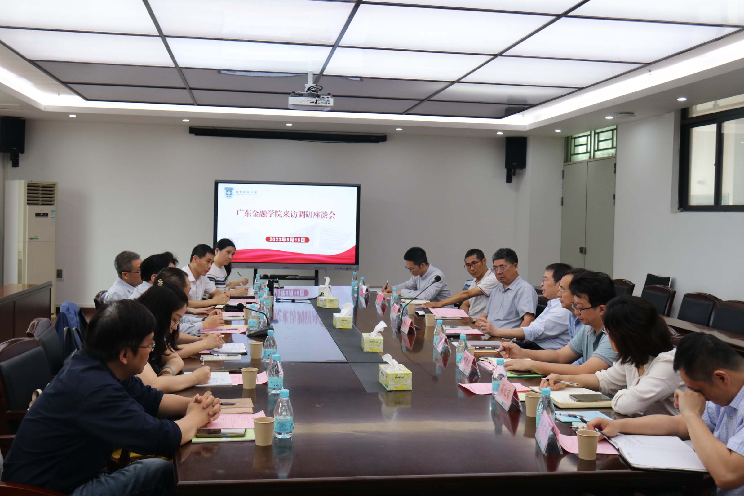 5月16日下午,广东金融学院副校长易行健、科研处处长汪前元、研究生处处长卿前龙等一行8人到访我校,调研学科建设、科学研究、研究生培养与管理等工作。副校长邹新月、研究生院院长谢雄伟、科研处处长邓世豹等参加座谈会。