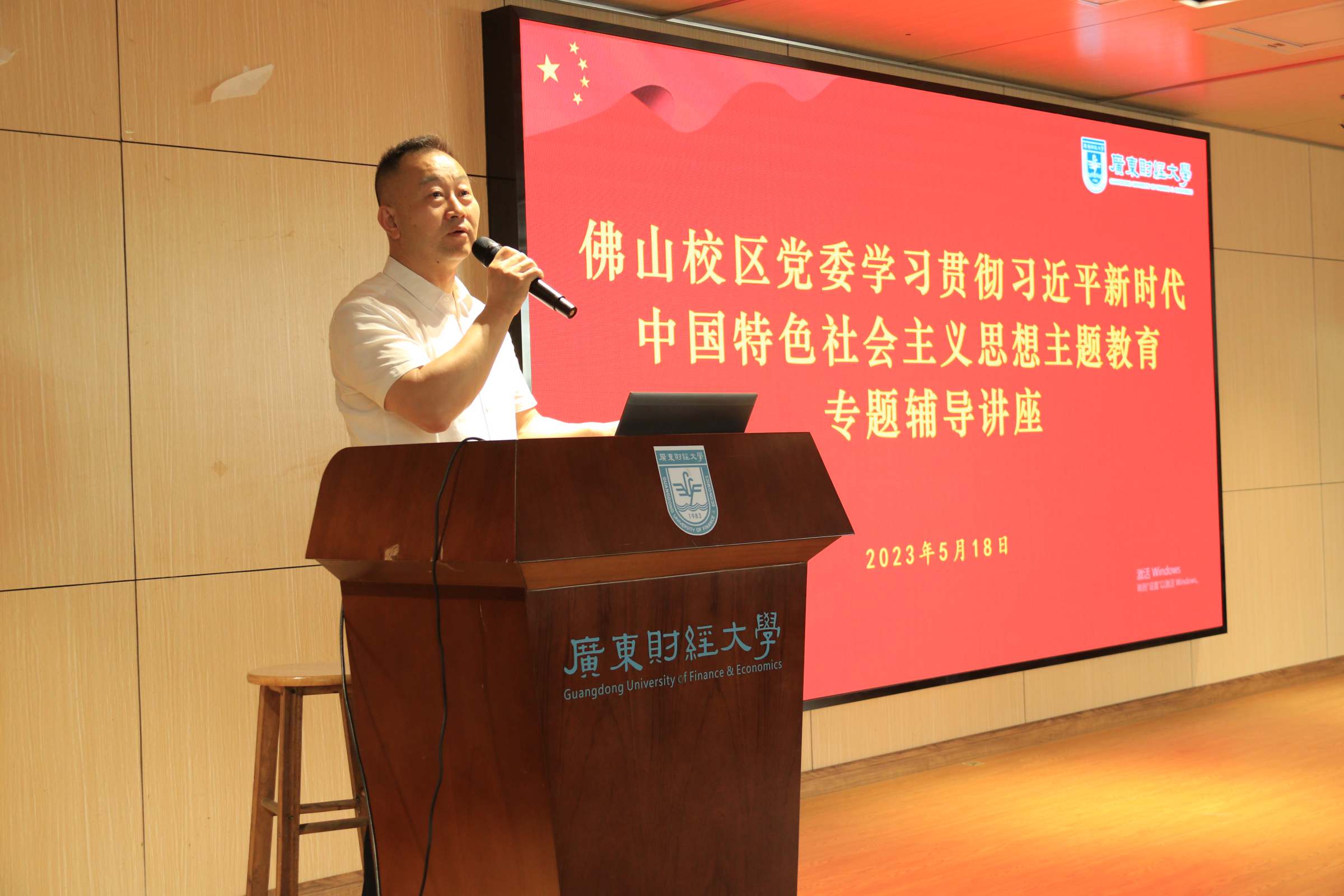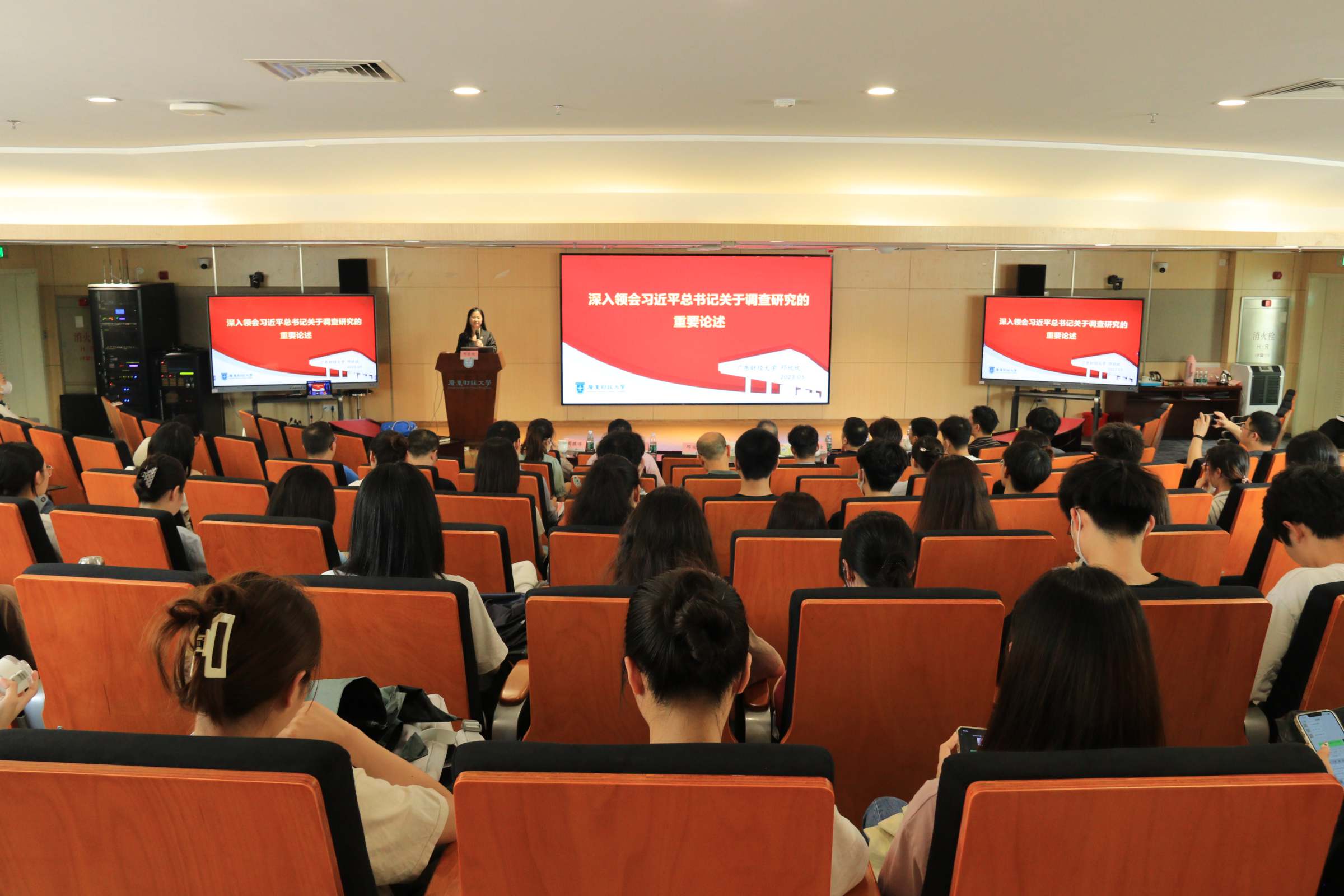 5月19日,佛山校区党委学习贯彻习近平新时代中国特色社会主义思想主题教育读书班专题辅导讲座在同心楼101报告厅举行,讲座特邀学校教务处副处长邓欣欣作主题为“习近平总书记关于调查研究的重要论述”的专题辅导,活动由学校党委常委、校区党委书记王伟主持。佛山校区党委全体党员、全学段学院师生党员、入党积极分子代表参加讲座。