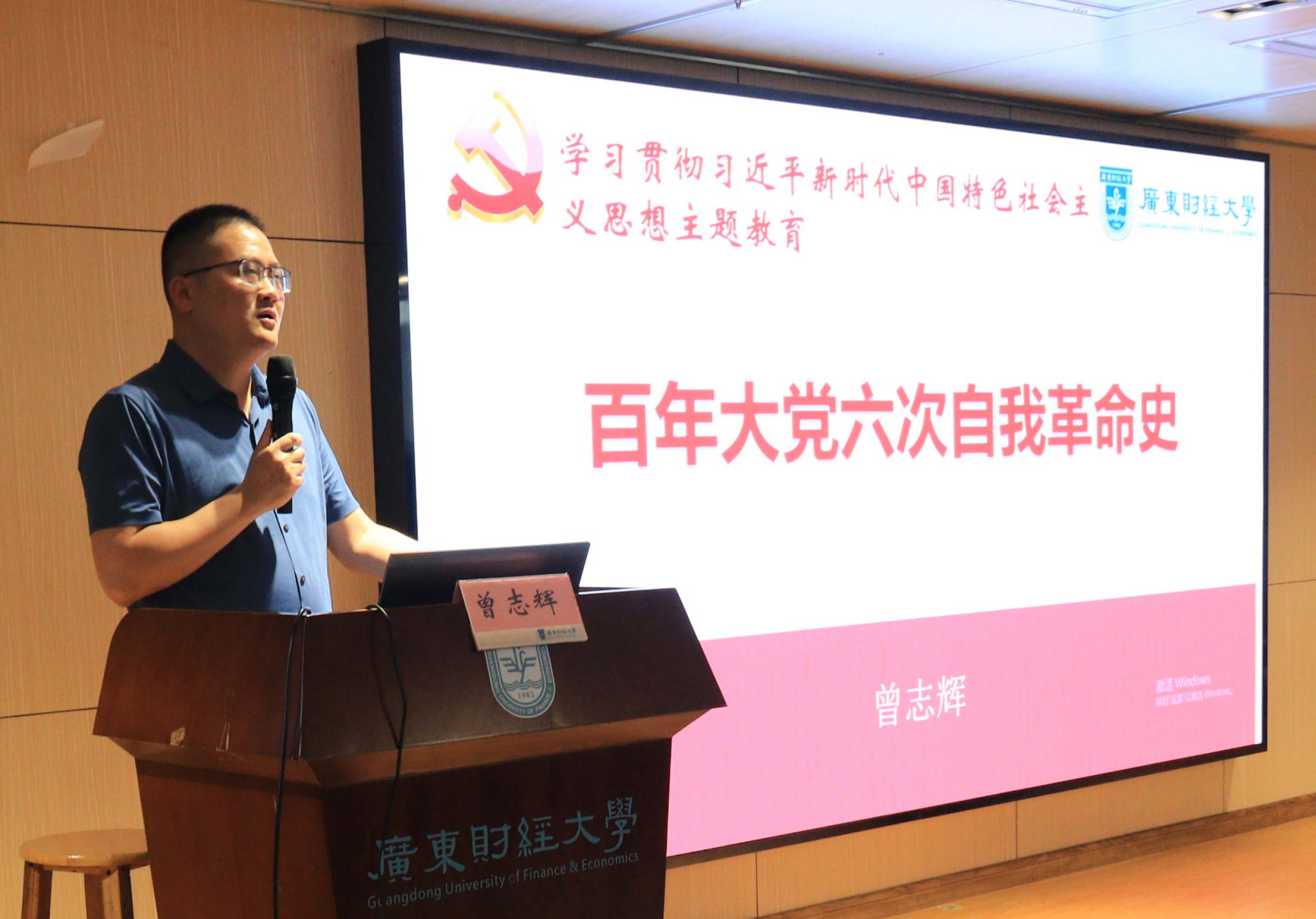 5月22日下午,佛山校区党委组织开展学习贯彻习近平新时代中国特色社会主义思想主题教育理论学习读书班专题辅导讲座,邀请了马克思主义学院副教授、历史学博士、党办校办副主任曾志辉作“百年大党的六次自我革命史”专题辅导报告。佛山校区党委主题教育理论学习读书班全体党员领导干部、佛山校区管委会全体成员、全学段各学院师生代表共同聆听讲座。曾志辉以幽默通俗的授课方式,用大量史实资料为现场师生详细讲解了“革命”一词的演变、中国共产党六次自我革命的历史过程及自我革命的历史经验。专题报告深入浅出,现场互动频繁,师生在轻松愉悦的“课堂”中把握百年大党自我革命战略思想的重要性与深刻性,领悟自我革命是破解百年大党独有难题的关键利器。