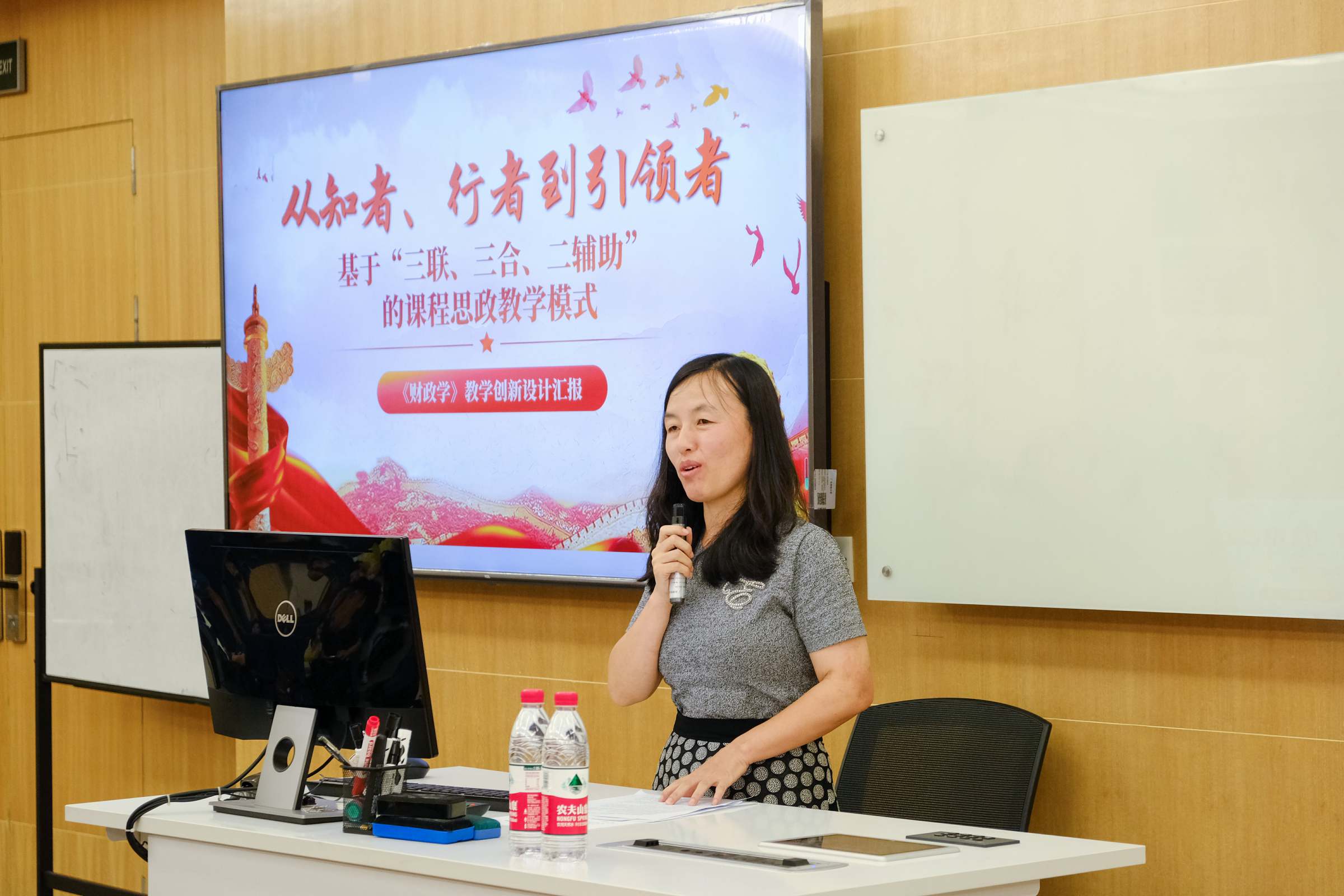 财政与税务学院副教授朱翠华进行了“财政学”授课展示,毫不保留地分享了自己参加课程思政教学竞赛等各类竞赛的经验和体悟。在交流互动环节,与会人员积极参与,踊跃提问,朱翠华为提问老师提供了解决思路及指导建议。