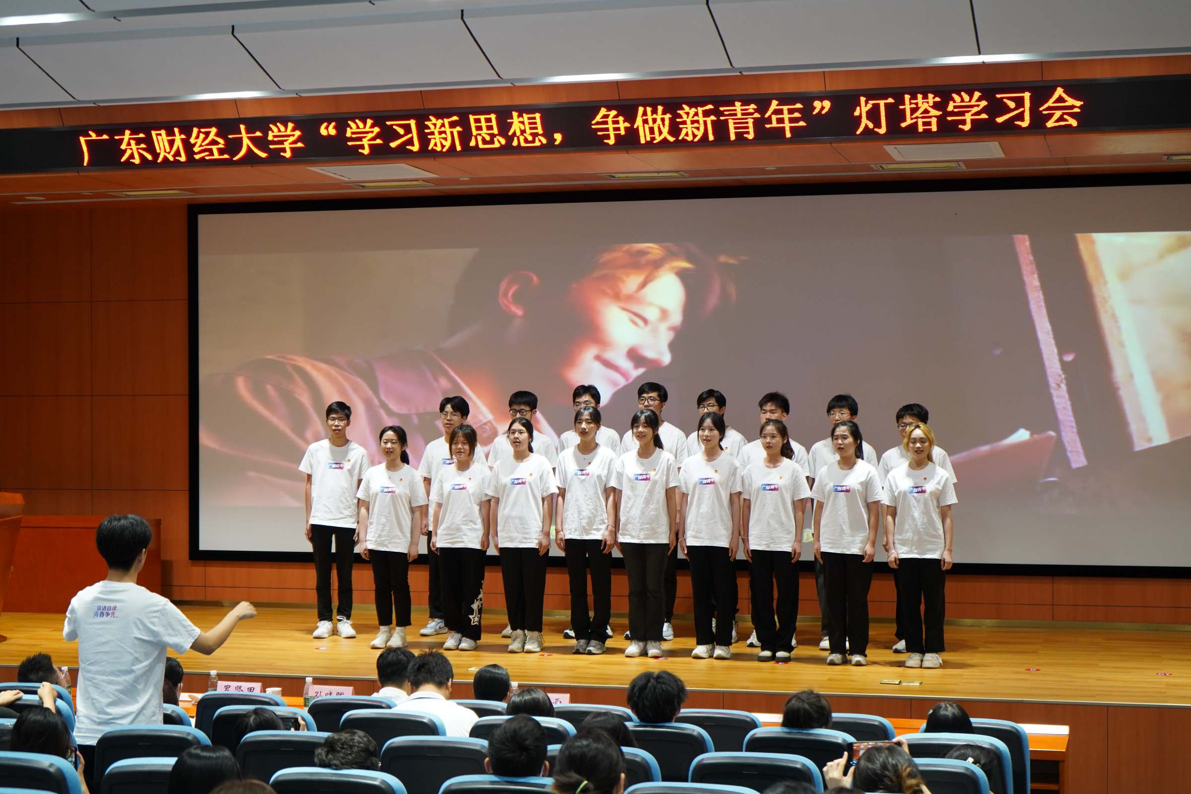活动现场,校大学生艺术团带来朗诵与合唱表演。在嘹亮的校歌歌声中,灯塔学习会圆满结束。