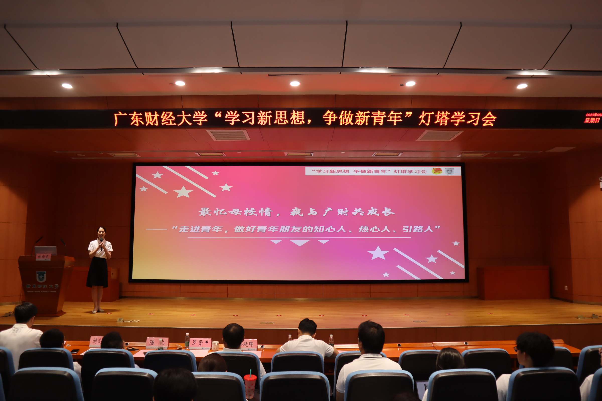 5月28日下午,我校“学习新思想 争做新青年”灯塔学习会在广州校区正心堂举行,本次活动也是校庆40周年2号公告发布系列活动之一。校团委工作人员,校级青马学员、校级学生组织骨干和2023届毕业生代表参加会议,校党委副书记罗贤甲出席。