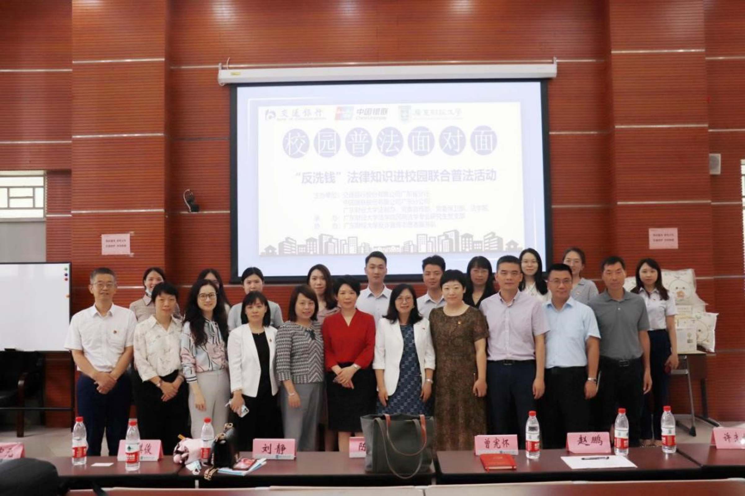 “反洗钱”法律知识专题访谈式讲座在广州校区北三教学楼103教室举行,交通银行广东省分行法律合规部副总经理刘静、营业部副总经理林祺俊,中国银联股份有限公司广东分公司业务运营部副总经理吴中元、刘艳兰,我校法学院党委书记陈静、法制办公室副主任赵鹏、党委宣传部副部长曾宪怀、党委保卫部副部长许先桂,法学院民商法学专业研究生党支部党员及入党积极分子、各学院学生代表等一百多人参加了活动。